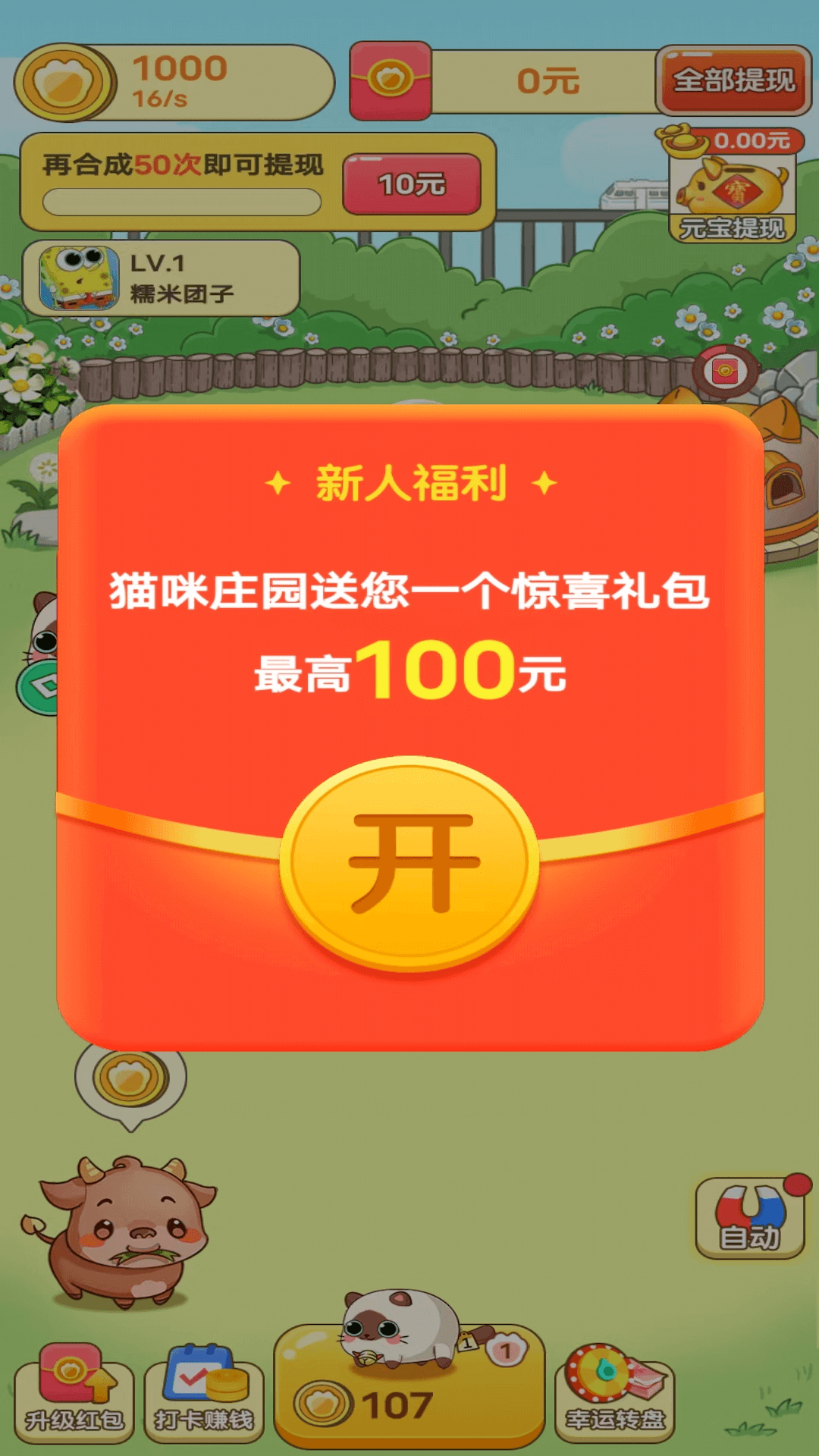 好玩,红包赚钱,快速提现!全民来玩的赚钱软件,猫咪庄园,简单合成领红包。