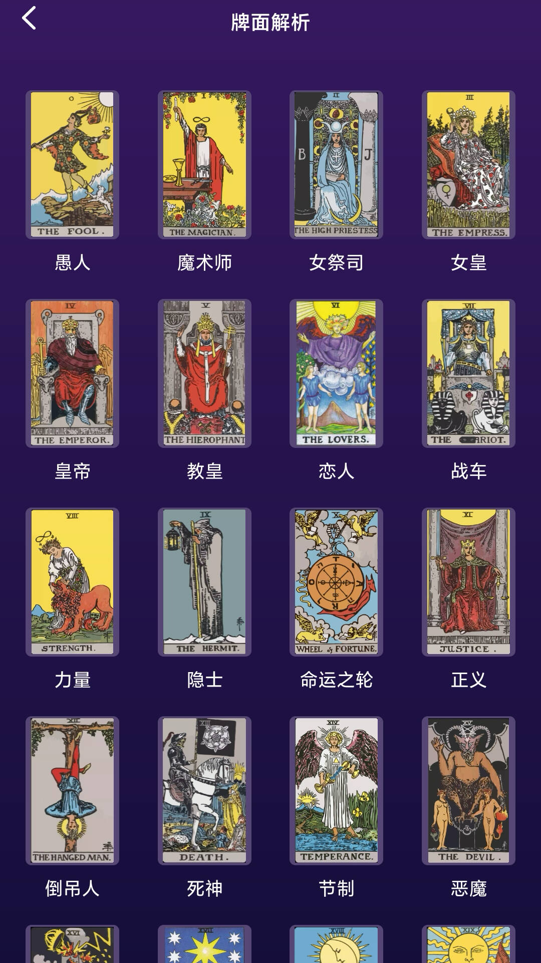 - 奥秘库拥有78张塔罗牌的详尽解析内容。其中,22张大阿尔克纳牌与56张小阿尔克纳牌可用于测试和占卜等活动。通过塔罗牌,您能够深入了解自己在爱情、学习、婚姻、人际、事业、财运、健康、运程以及综合等多方面的未来走向,清晰知晓自己的过去、现在与未来的状况。