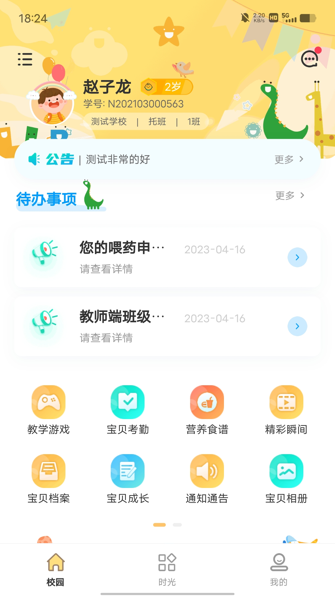 1、打造家长和老师的统一互动入口,集成各类家长应用,方便家长查看孩子在校园期间的“衣食住行学“和对缴费、请假等行为的快捷操作