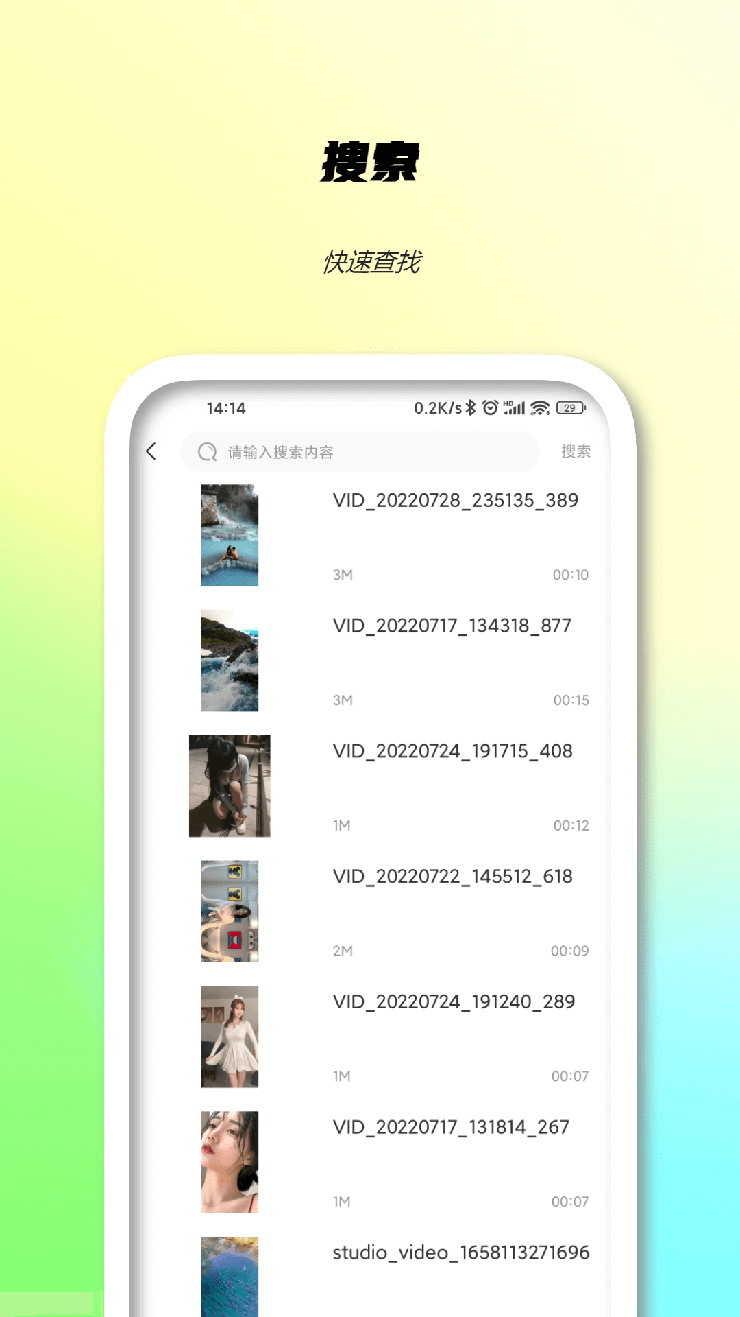 【快速搜索】利用搜索功能,凭借关键词即可查找相应的本地视频内容。