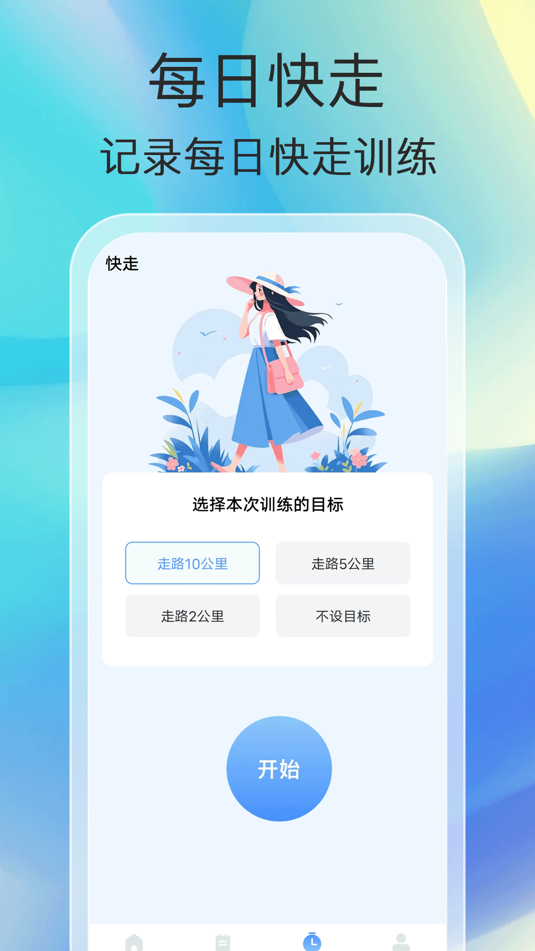 [快走] 用户选择本次目标里程数,点击开始帮助用户记录所用的时间