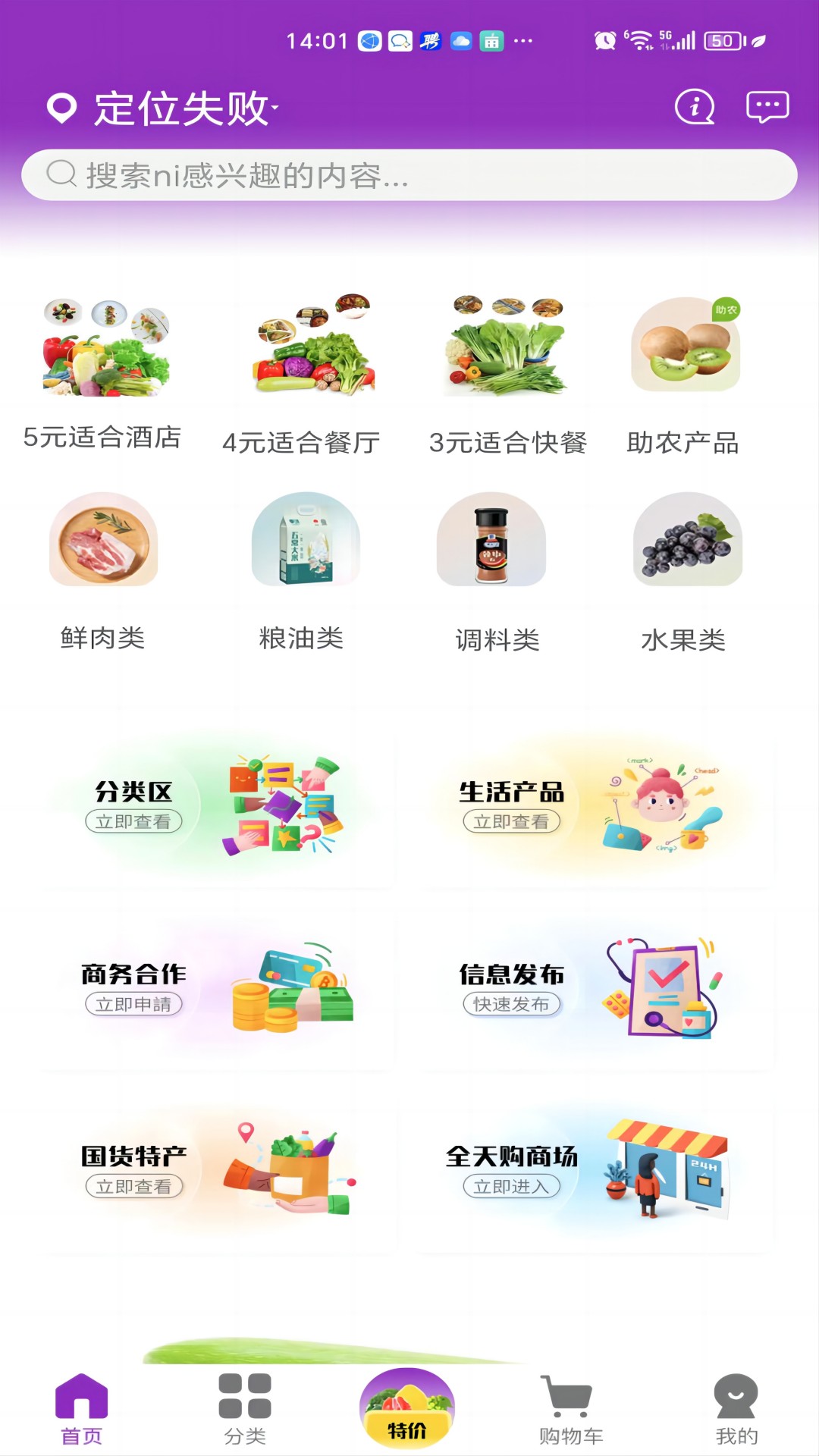 1:巨森鲜线上农贸市场平台.物美价廉.品类多又全.满足客户生活所需物资.
