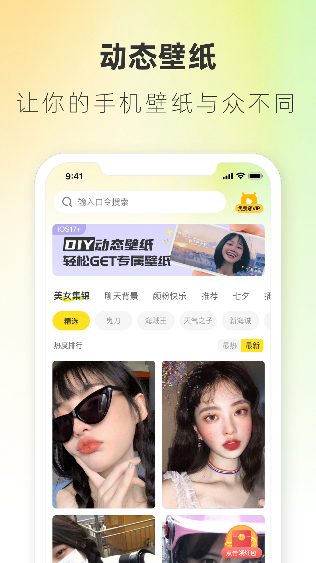 换张新鲜的壁纸,开启元气满满的一天吧! 一起来感受缤纷的世界,是清晨林间的光,波澜壮阔的海,鲜丽娇媚的花,亦或是漫天的星空,浩瀚无垠的宇宙。 一起来走近你喜欢的ta,是熟悉的动漫人物、满心欢喜的爱豆,心动的男神女神,亦或是治愈的萌宠,炫酷的游戏角色。 海量高清壁纸随心下载! 更有头像、表情包、背景图供你选择!
