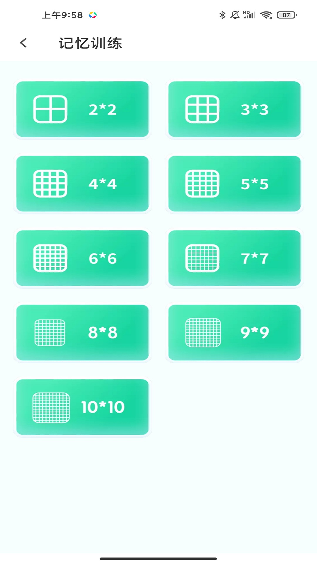 【记忆训练】您能够选择不同数量的格子,并且逐步增加格子数量以达成训练目的。