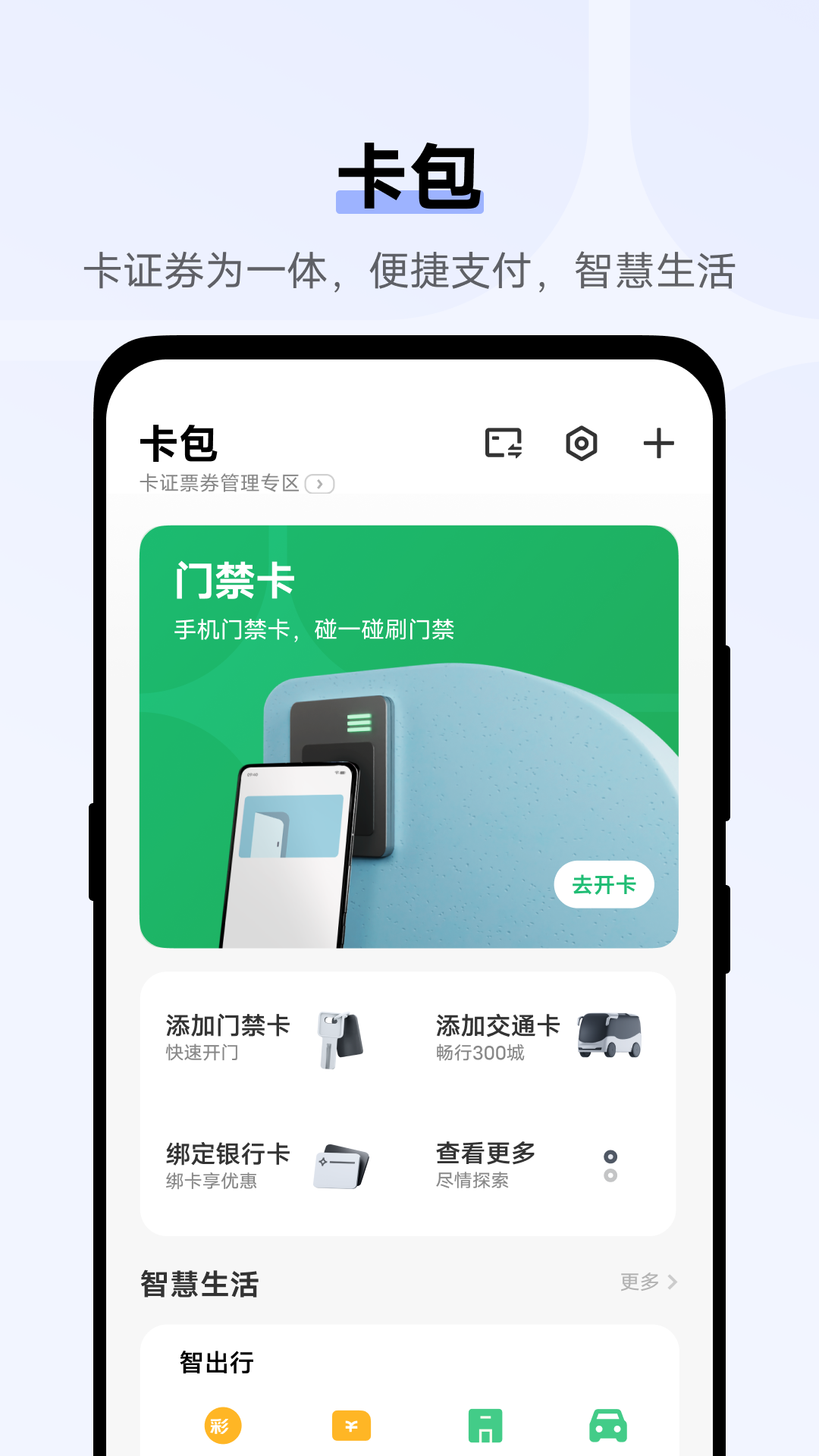 【实用卡证】NFC门禁卡:支持手机秒开门禁,断网锁屏也能用(仅限NFC机型);NFC交通卡:支持50+张交通卡,覆盖全国300+城市,公交地铁一碰乘车享优惠(仅限NFC机型);vivo Pay:支持手机碰一碰闪付和二维码支付,支付无需打开APP,还可享银联支付优惠;电子卡证:实用证照免费开通,出门忘带证件不用慌,无卡出行一身轻。