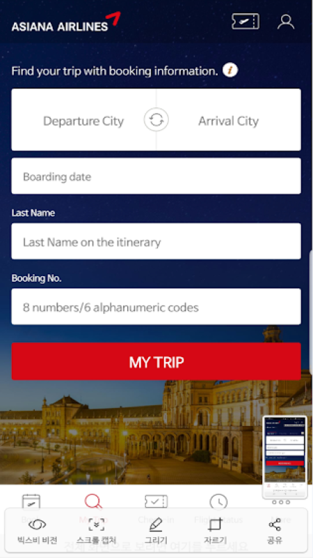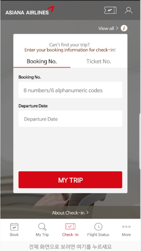 Welcome aboard! Asiana AirlinesDownload the new Asiana Airlines application, and you can make reservations,check-inand view your reservation details any place and any time. ---Asiana Airlines App Overview---Main Features:- Flight ticket purchase/cancellation, view/change reservation- Seat assignment, check-in, view boarding pass- View flight schedule/fare- View mileage and mobile card- Detailed information on news, events/promotions Unique Features:- Baggage Calculator- Argmented Reality- Coupon discount- Missing mileage redemption- Destination information