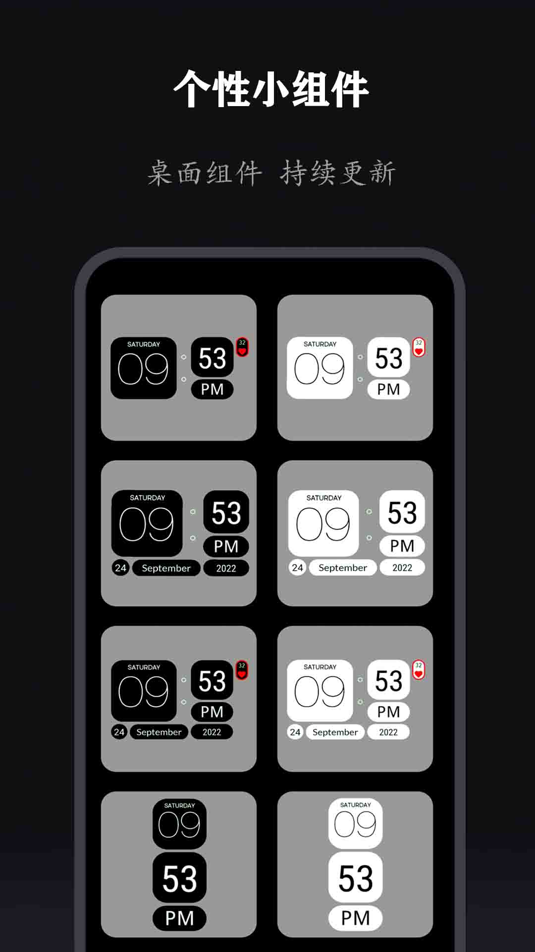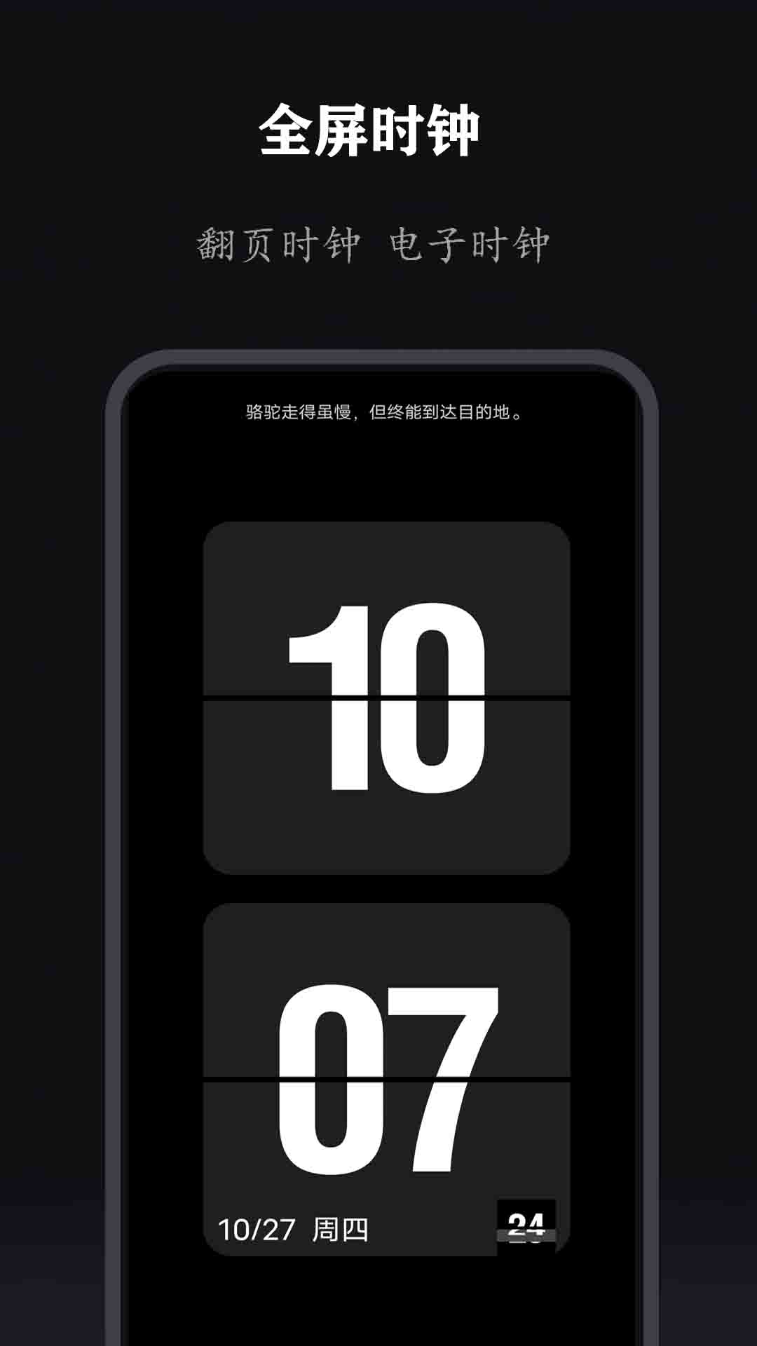 这款时钟采用极简的设计风格,经典的翻页显示方式,并且支持横屏和竖屏两种显示模式,使用起来更加舒适自在。您可以将其设置为手机屏保时钟,或者添加为桌面悬浮时钟小组件,方便随时查看时间。
