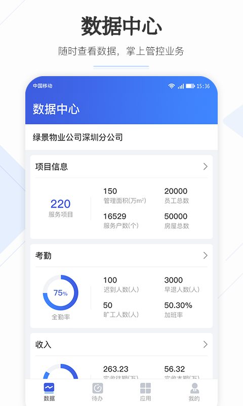 业委汇是一款高度聚合的移动业控平台,为企业员工提供了业务处理、流程办理、数据查询、状态跟踪等业务能力。为企业提升办公效率、降低管控成本,实现企业内部的业务协同,质量把控、数据分析。