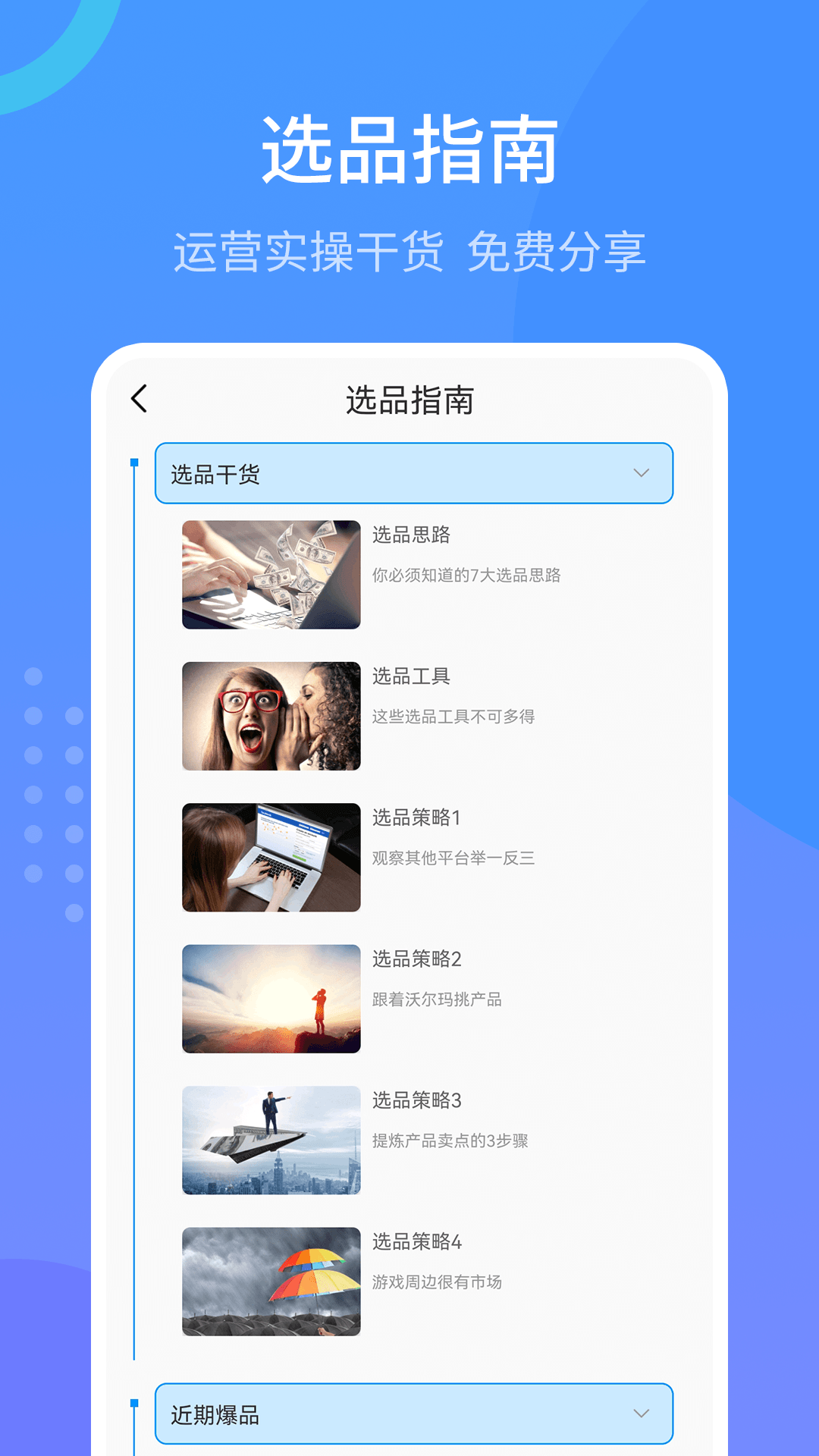 该平台会教你在运营时解决所遇到的疑难问题。其中涵盖常用工具的使用方法、产品标题与描述的撰写、产品图片的编辑、目标客户广告兴趣词的查找、提高网站落地页转化率的方法,以及防止店铺被封的技巧等,而且会通过具体案例逐步进行讲解。
