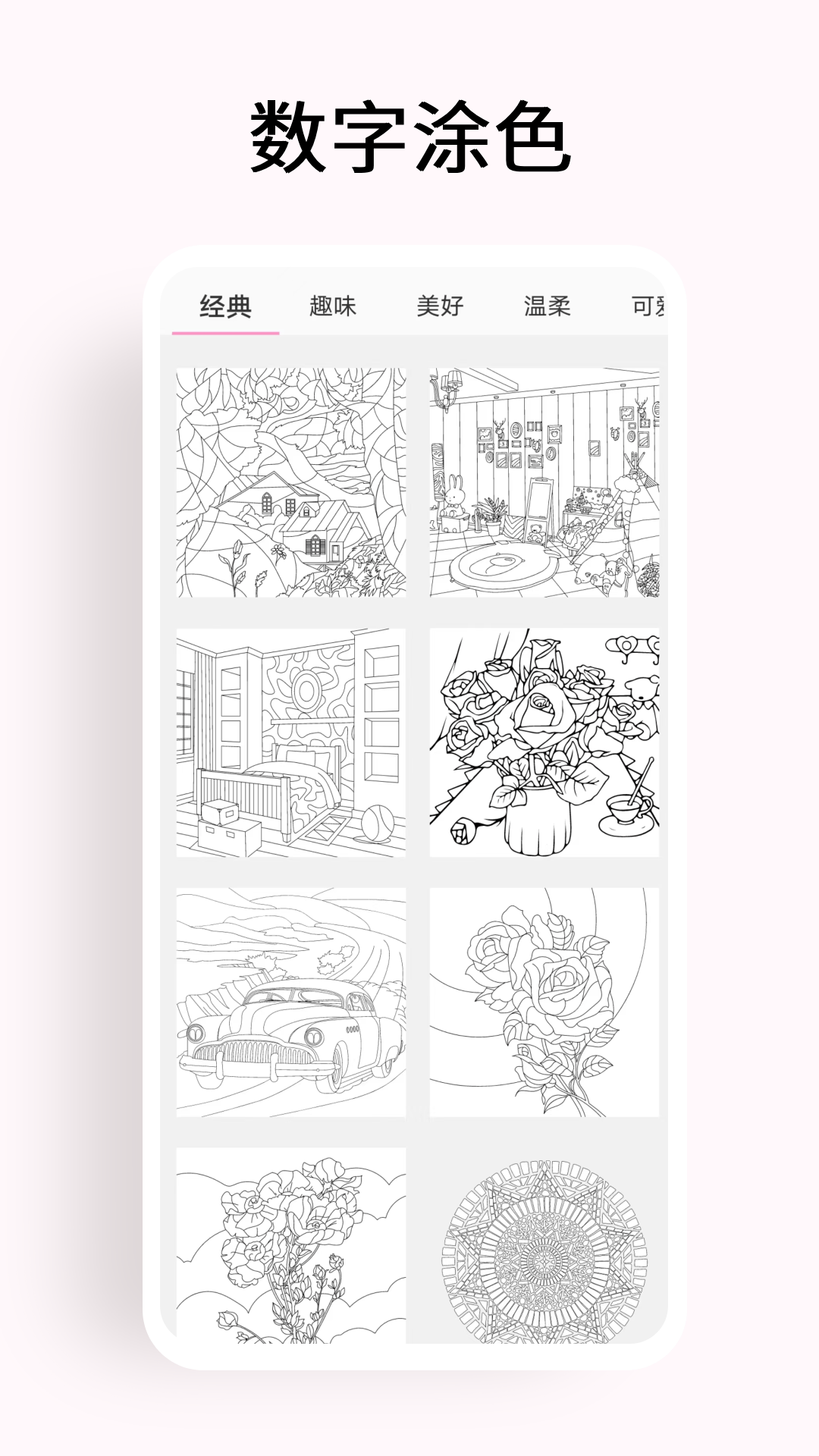 一款放松解压的数字涂色画画工具,随时随地可以涂色画画,大朋友和小朋友都可以参与进来,感受画画带来的乐趣,内容丰富,操作便捷。