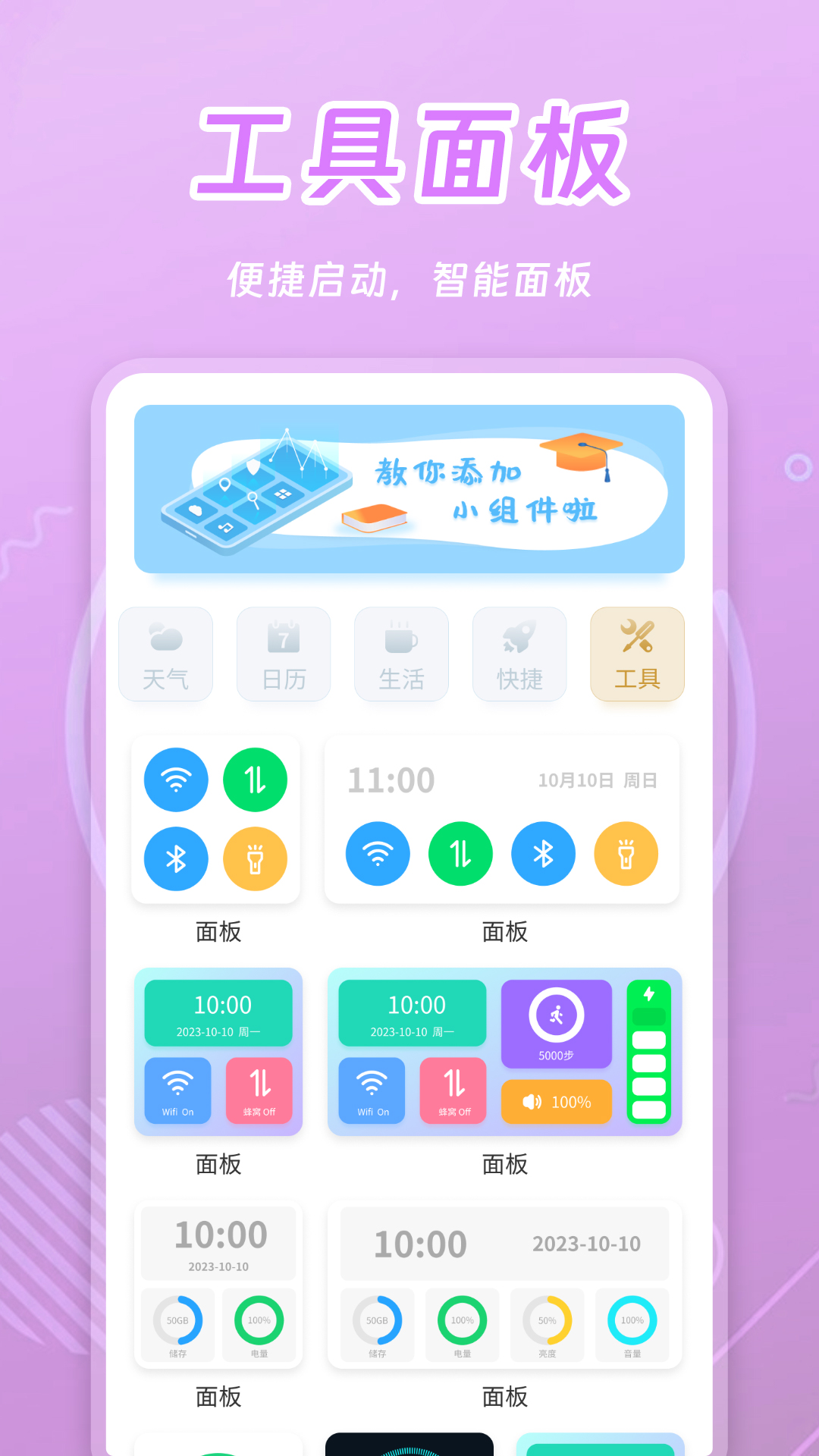 这里有各种各样功能不同的实用组件,你可以随时使用它们。而且组件有不同的尺寸,可以满足你的个性化需求哦。不断还有更多创意又实用的小组件加入其中呢……