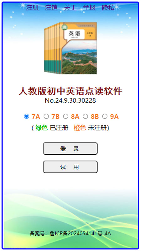 以上共三个年级,五个分册,其中七年级上册采用24年秋季新版,在原单词点读,课文点读,单词听写的基础上,增加了全册图文点读、单词默写、音素点读等功能。其他各册暂没有大改版。