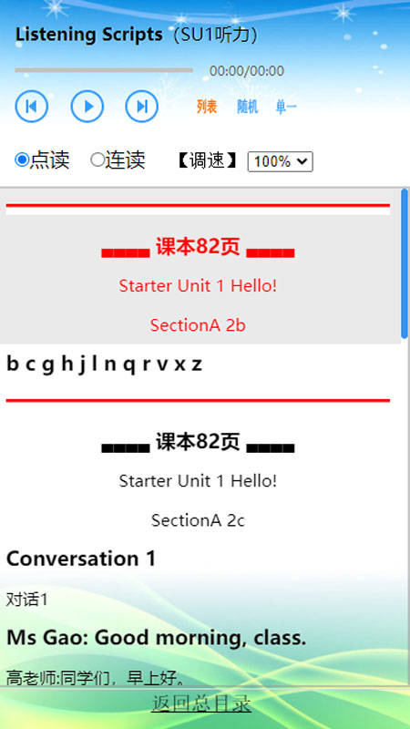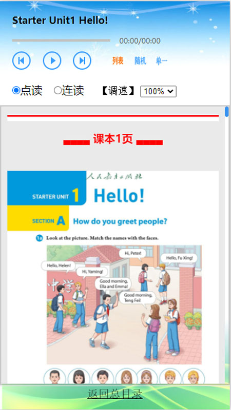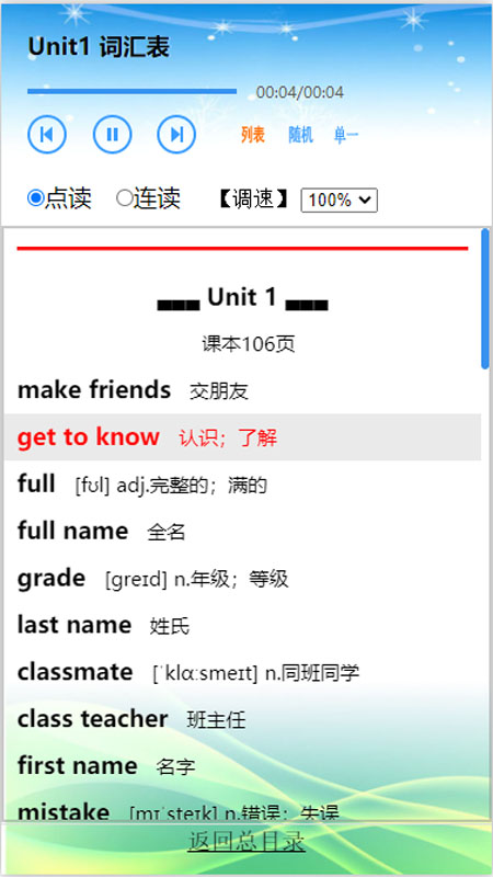人教版初中英语,含七年级,八年级,九年级,点读,听写,同步训练,调速,英汉互译,音标学习。