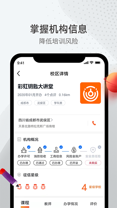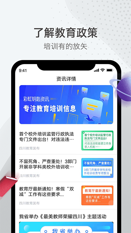 彩虹钥匙是一个致力于规范校外培训,为孩子校外培训保驾护航的平台。它能够使培训机构的信息更加透明化,从而让家长更加安心。