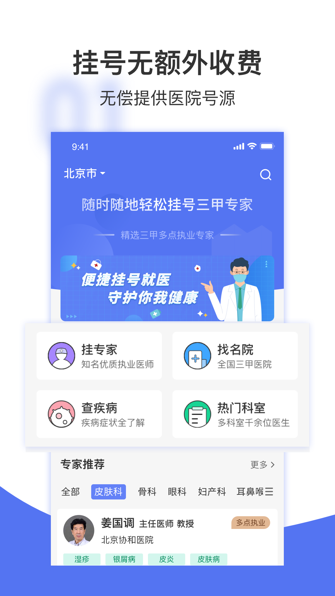 京医挂号通是国内公益性预约挂号平台!平台汇聚全国知名三甲医生,提供上千位知名专家号源,一键快速免费预约挂号,为就诊患者提供便捷经济的就医通道。
