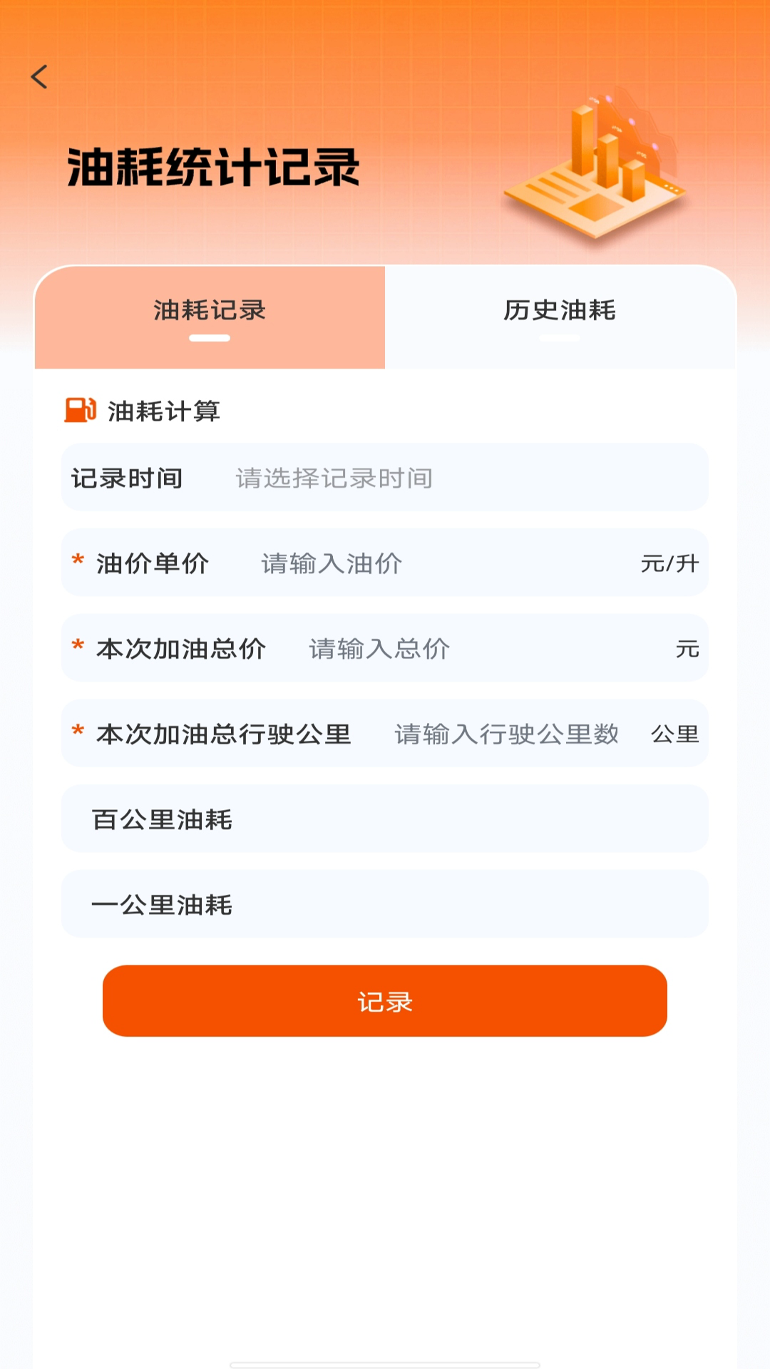 3. 油耗记录:
