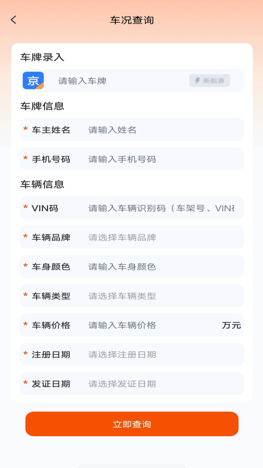 一键快速搜索查询车况