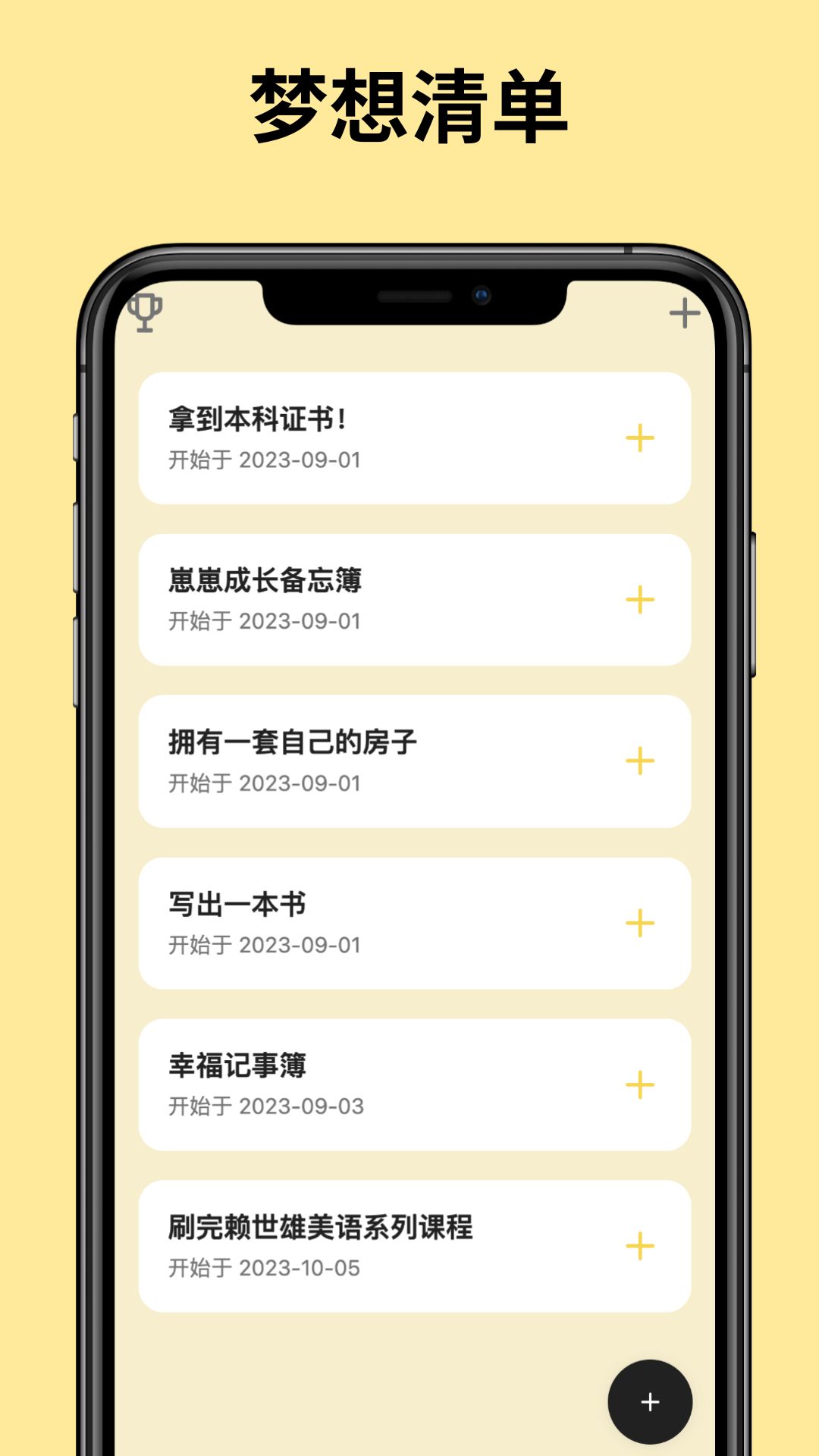 【愿望清单创建】能够创建愿望清单、目标清单,或是想要跟踪的各类事项,并且对每个事项的进展、每次为之付出的努力进行记录。