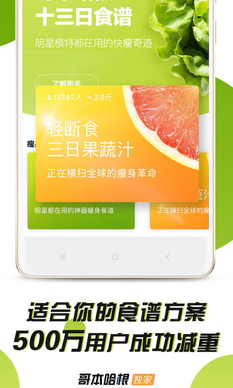 评论人9和规范fv:已经进行过两次哥本哈根的13天食谱减肥计划,一次减重16斤,另一次减重20斤,整个过程完全健康安全,到现在都没有反弹,而且现在吃饭也开始多吃蔬菜了,这是一款非常用心的APP。