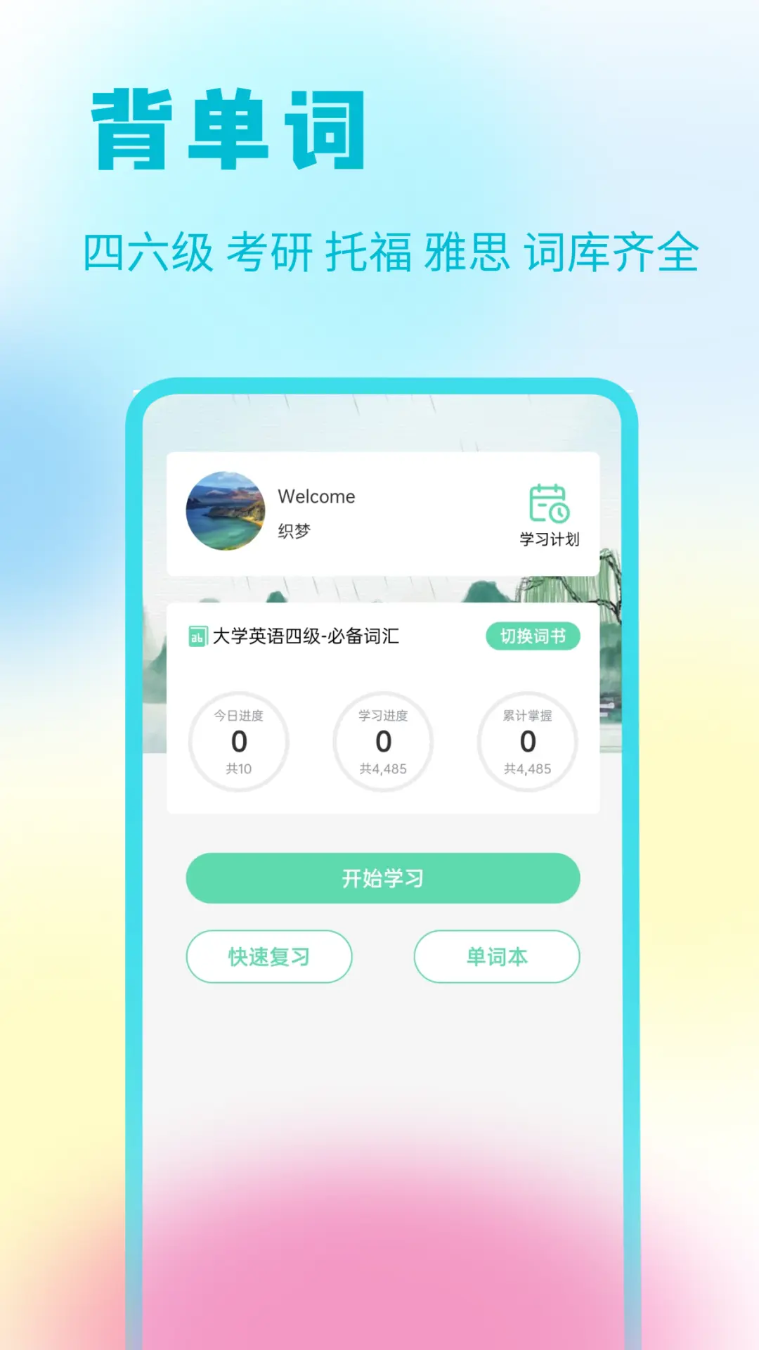 【5】 背单词 根据记忆曲线设计,词库丰富专升本、四六级到、考研、托福、雅思等等应有尽有。