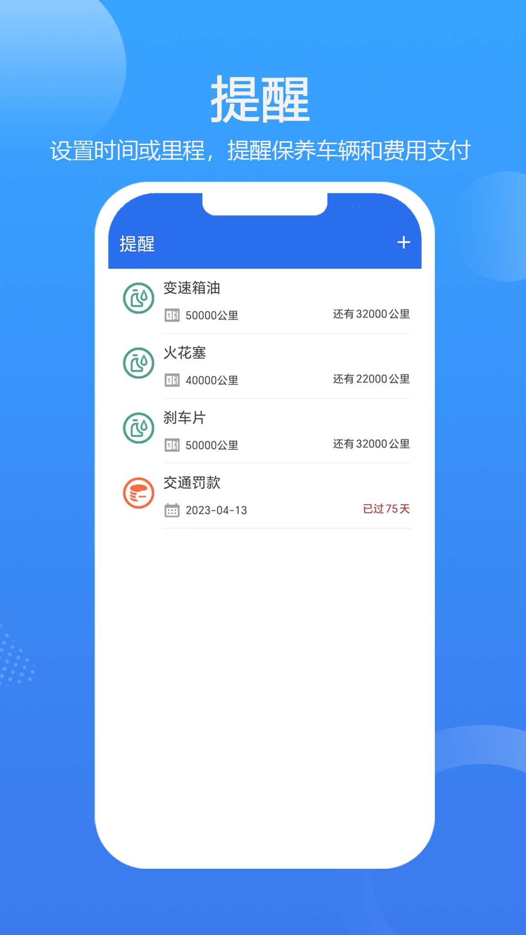 2. **提醒功能**:车主能够设定时间或者公里数,以便及时提醒自己进行车辆保养或者支出相关费用。