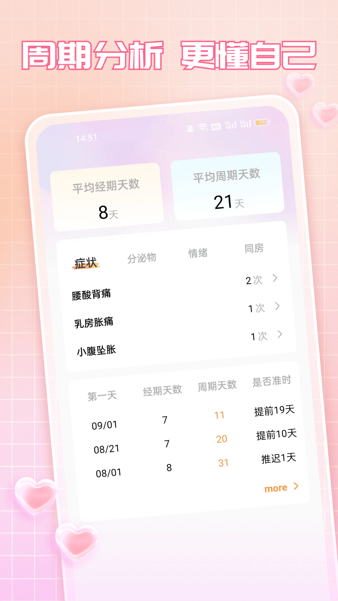 美记月经期日记,是女性的贴心神器,专属的健康管家! 在这里,您可以计算出当月及未来多月的安全期、排卵期、月经期,帮助每一位女性朋友更好的保护管理自己的生理健康! - 经期管理:快速记录每次经期,直观展示当下状态 - 预测服务:根据记录智能预测下一次经期和排卵日 - 数据统计:提供分析功能,周期波动一目了然,查看历史记录更直观 - 完整记录:满足您日常记录经期、流量、痛经、爱爱、心情、习惯的需求 - 经期食谱:经期是需要加强营养的特殊生理时期,有精心挑选的菜谱供选择,更有其他补血、补维生素、健康等菜谱提供。 - 贴心提醒:支持自定义经期起止的日期提醒及其他提醒(喝水、运动等)