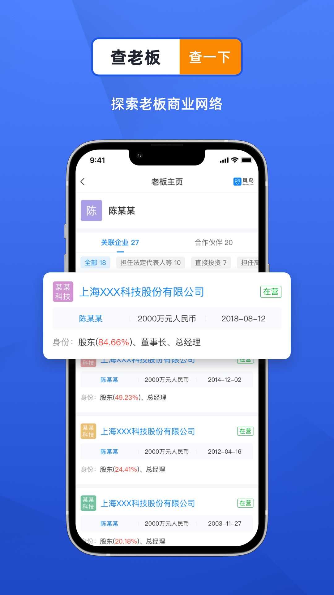 在这里,用户可以免费随时随地进行查公司、查官司、查老赖、查关系、查信用、查老板等操作。