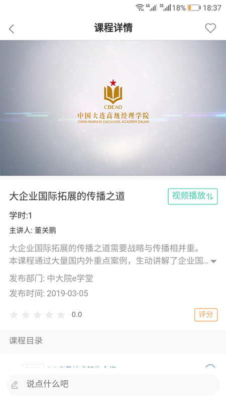 本应用以课程实效性和培训互动性为重心,将学习内容通过视频、音频、网页等多种富媒体形式展现,便于学员随时看、随时听、随时查、随时用,切实成为学员“终身学习助理”,为培养新时代治企兴企的企业家,培育高素质专业化经营管理人才贡献力量。