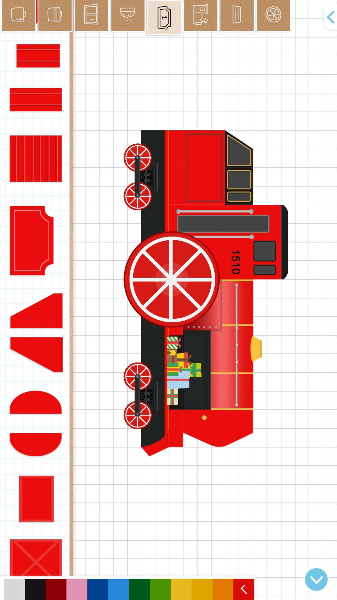 在这个应用里,小朋友有两种制造火车的方式:一是模板模式,此模式下提供了众多火车模板,包括古老的蒸汽火车、强劲的内燃机车、现代的高速列车,还有充满奇思妙想的特别火车;二是自由拼装模式,应用提供了大量不同配色的火车部件、轮子、贴纸以及基础形状的积木块,小朋友既可以利用这些元素快速搭建火车,也可以自由发挥想象随意搭建。