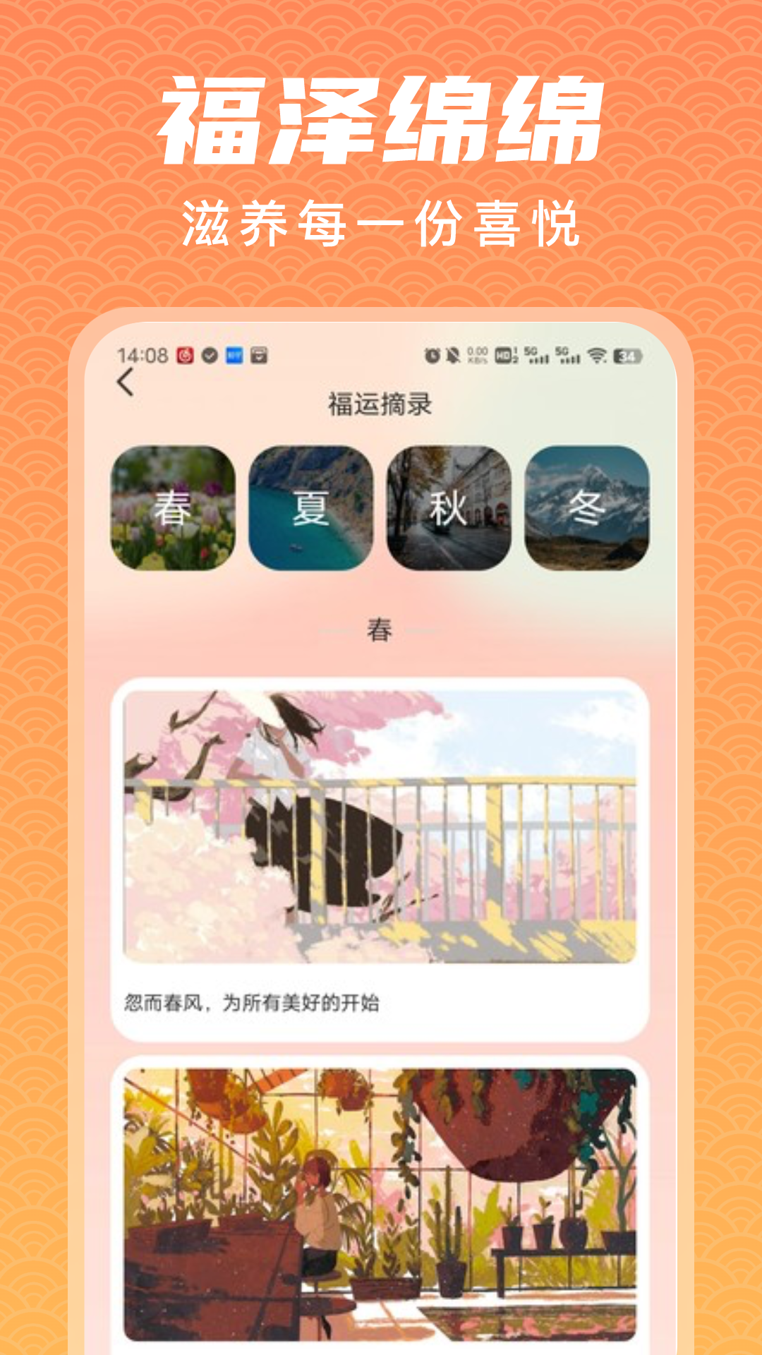 福泽绵绵,一款致力于传承与弘扬幸福文化的应用。我们深信,幸福不仅仅是瞬间的欢愉,更是那份能够跨越时间、代代相传的温暖与福祉。因此,福泽绵绵精心打造了集文化传承、家庭互动、健康管理、心灵成长及社区共享于一体的全方位服务体系,旨在为用户打造一个充满爱、和谐与福泽的生活圈。