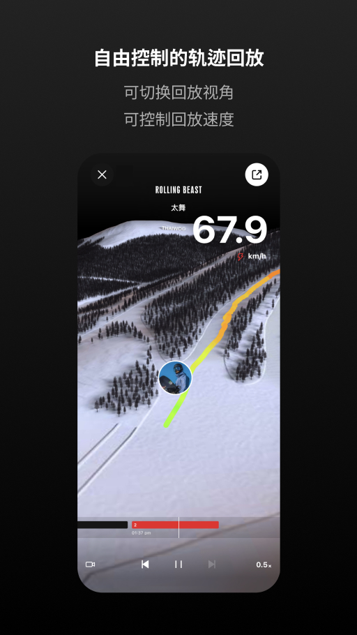 这里提供3D滑行轨迹回放视频,能对滑雪数据进行记录。你可以收藏自己的滑雪成就,标记最喜爱的滑行过程,还能够分享自己的滑雪轨迹以及数据。