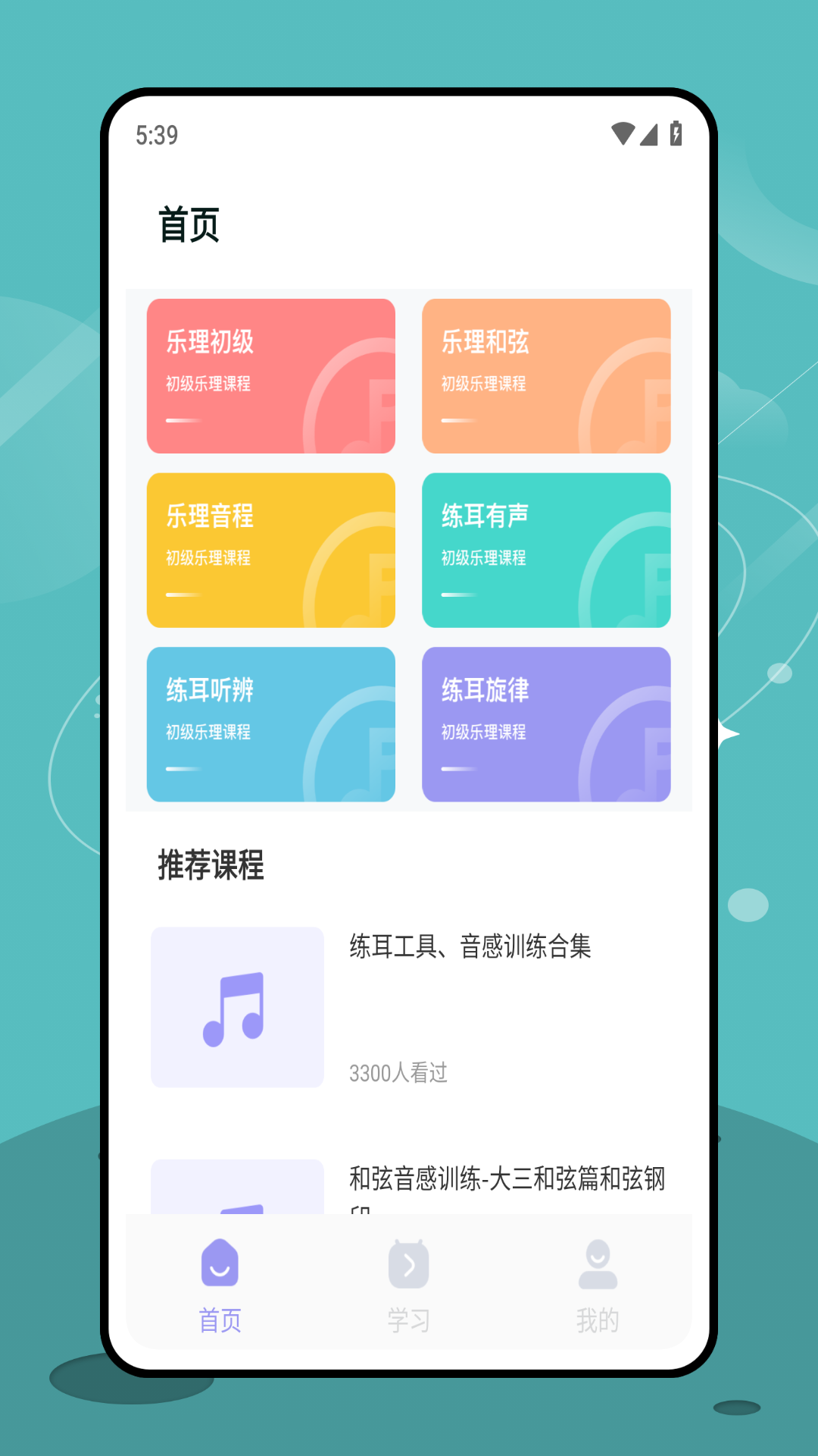 练耳听辨- 设计了各种听辨练习题型,如听辨音高、节奏、和弦、旋律走向等。