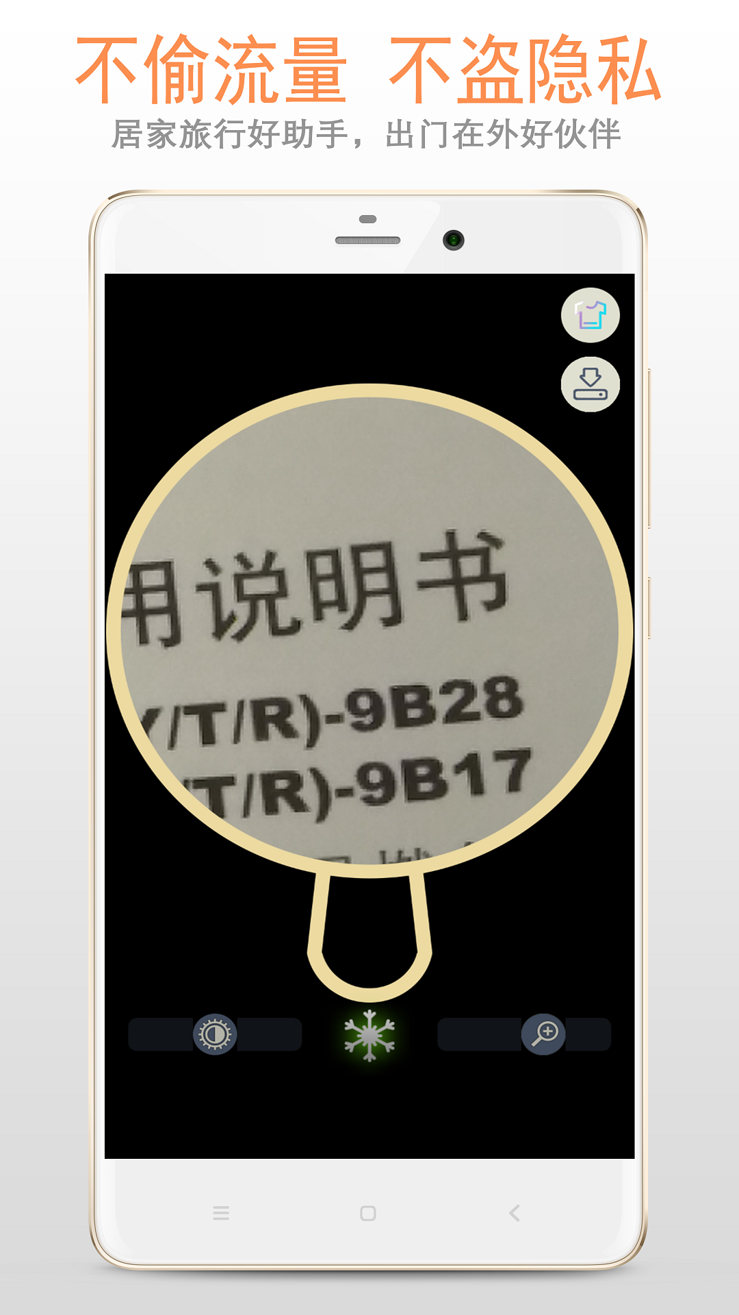 放大镜是一款免费工具,它是为满足生活中的各种需求而精心设计的。这款应用有着诸多优秀的特性,它没有后台启动程序,既不会盗取用户隐私,也不会偷跑流量,并且占用内存极少。其界面设计简洁、大方又实用,操作起来非常简便,启动速度也相当快。在兼容性方面表现出色,能够支持Android 2.3以及更高版本的所有系统。它能把手机变成一个精致的观察与研究工具,您可以随心所欲地调整各种比例和不同的亮度。美好的事物往往隐藏在细节之中,而细节又能体现出品味,放大镜可以帮助您发现这些细节,查看瑕疵,让您能够留住美好,细细品味生活!