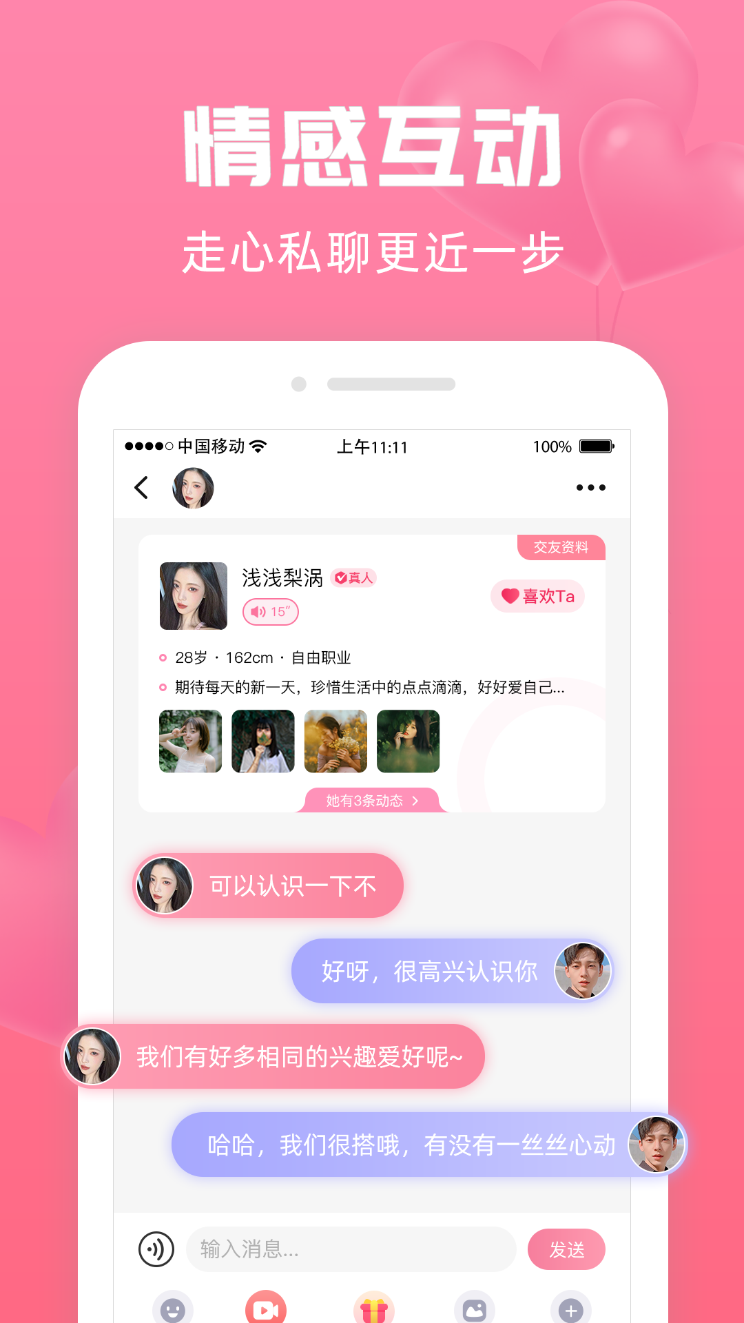 - 高效聊天:聊天回复率相当高,能够实现零距离视频聊天,短短一分钟就能让彼此关系更亲近。