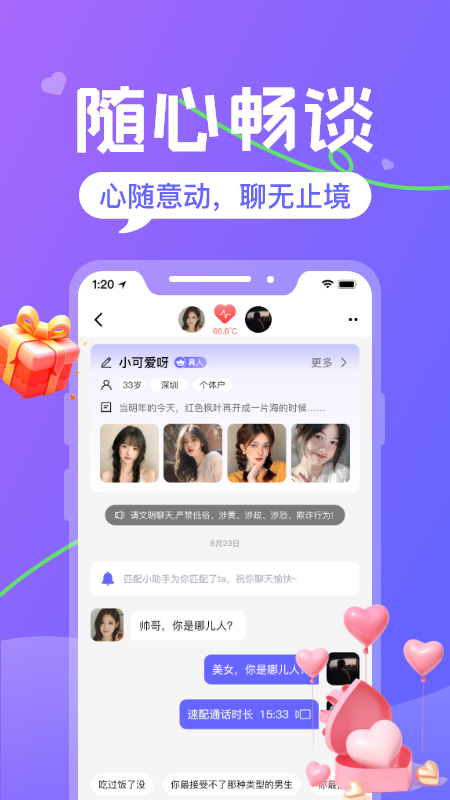 当你感觉无聊之际,不妨来到火恋,与他人畅聊,重新找回充满趣味的自己;在孤单的时候,火恋能让你邂逅趣味相投的陌生朋友,迅速找到心仪的聊天对象来闲话家常;闲暇无事时,你能够通过火恋寻找附近的人,享受无比畅快的语音聊天,找到属于自己的独立私密空间;若是难过了,火恋就是你可以与陌生人亲密语音互动的地方,让你不再于夜晚独自默默伤心;而当失眠时,你可以在火恋参与聊天互动,分享各种有趣的话题,就像书写自己的心灵日记一样。