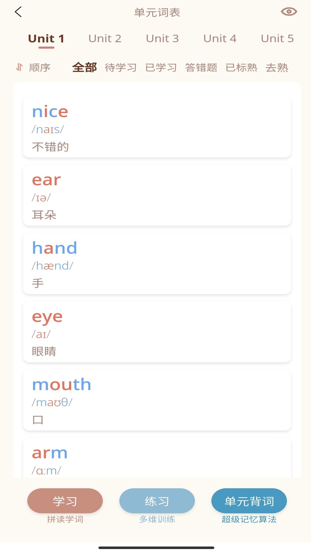 轻记单词主要是帮助用户熟悉和了解自然拼读及拆分拼读,让单词轻松好记。同时我们还使用里图片记忆、词根词缀、词源等多种方式辅助用户记忆单词。复习规则我们使用了升级版的Anki记忆算法。我们保持和教材同步,及时更新。