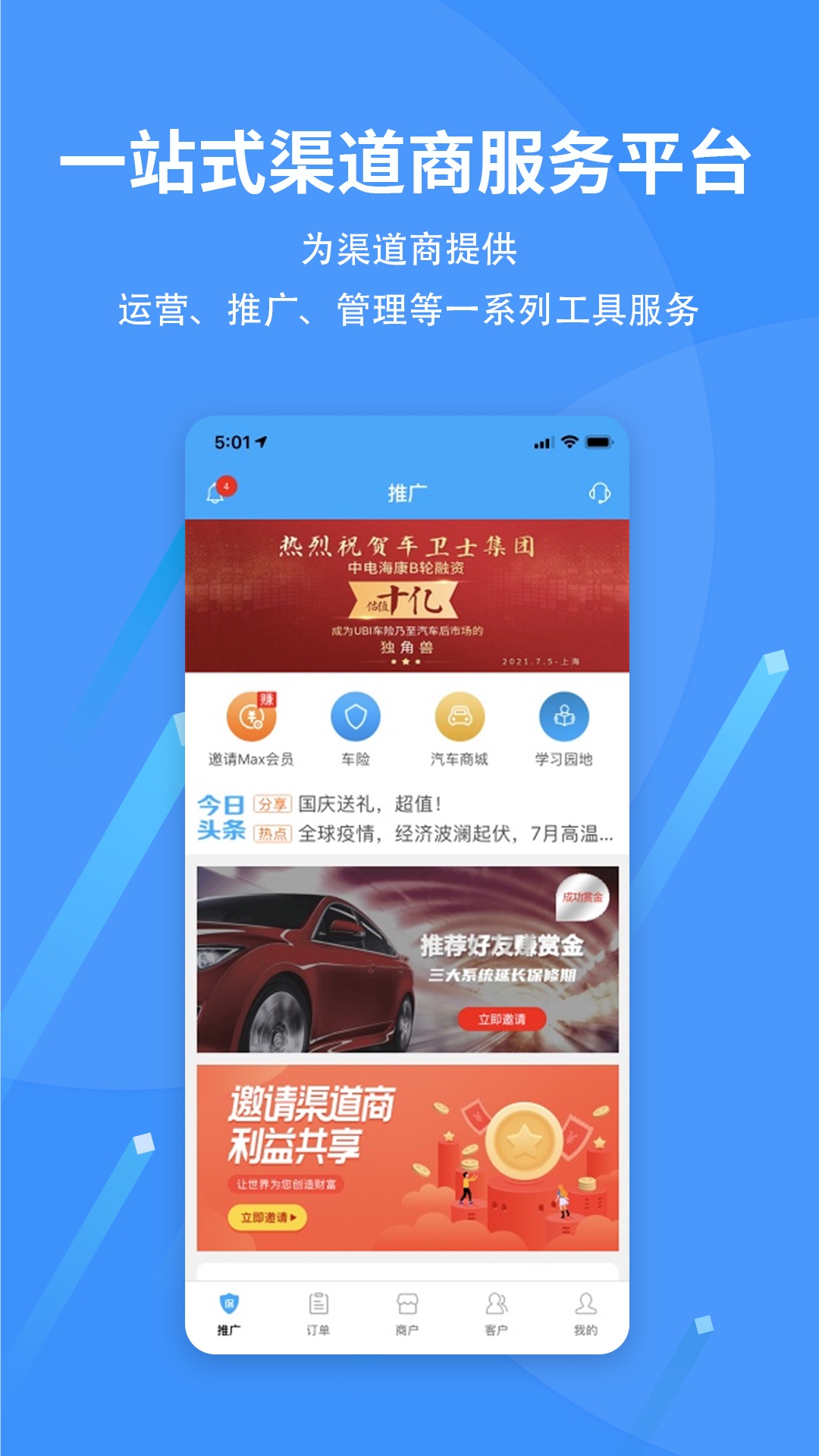 其六,包含马车保APP、智能车载设备,支持活动推广以及具备渠道商合作邀请机制。