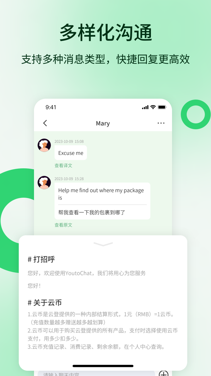 YoutoChat智能客服系统是一款极为高效且智能的客户服务应用,不管您是企业用户还是个人用户,都能够借助该应用达成快速、便利的客户沟通并解决相关问题。我们提供全天24小时在线的客服支持服务,从而让您的客户体会到独一无二的优质服务。