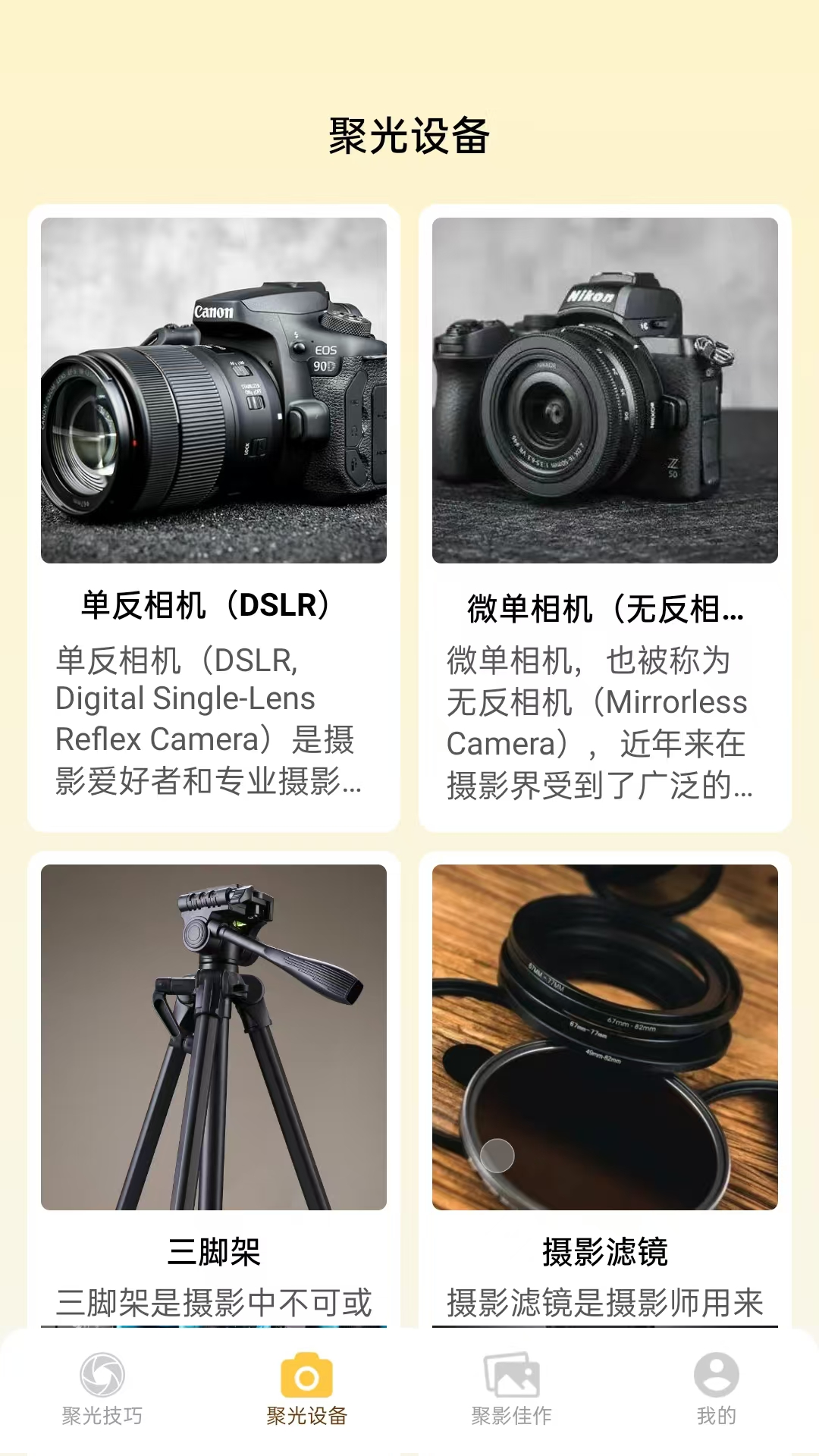 “聚看一刻“是一款专注于摄影科普的APP,涵盖了聚光设备、聚焦技巧和聚影佳作三大部分。在聚光设备中,用户可以深入了解各类摄影器材的种类、功能以及如何选择适合自己的摄影装备;在聚焦技巧中,用户可以学习到提升拍摄技术、构图技巧和后期处理的专业知识;而在聚影佳作中,用户可以欣赏到来自摄影界优秀的作品分享,启发灵感、提升审美。“聚看一刻“将帮助用户更好地理解摄影,并提升自己的拍摄水平,成为一名更优秀的摄影师。