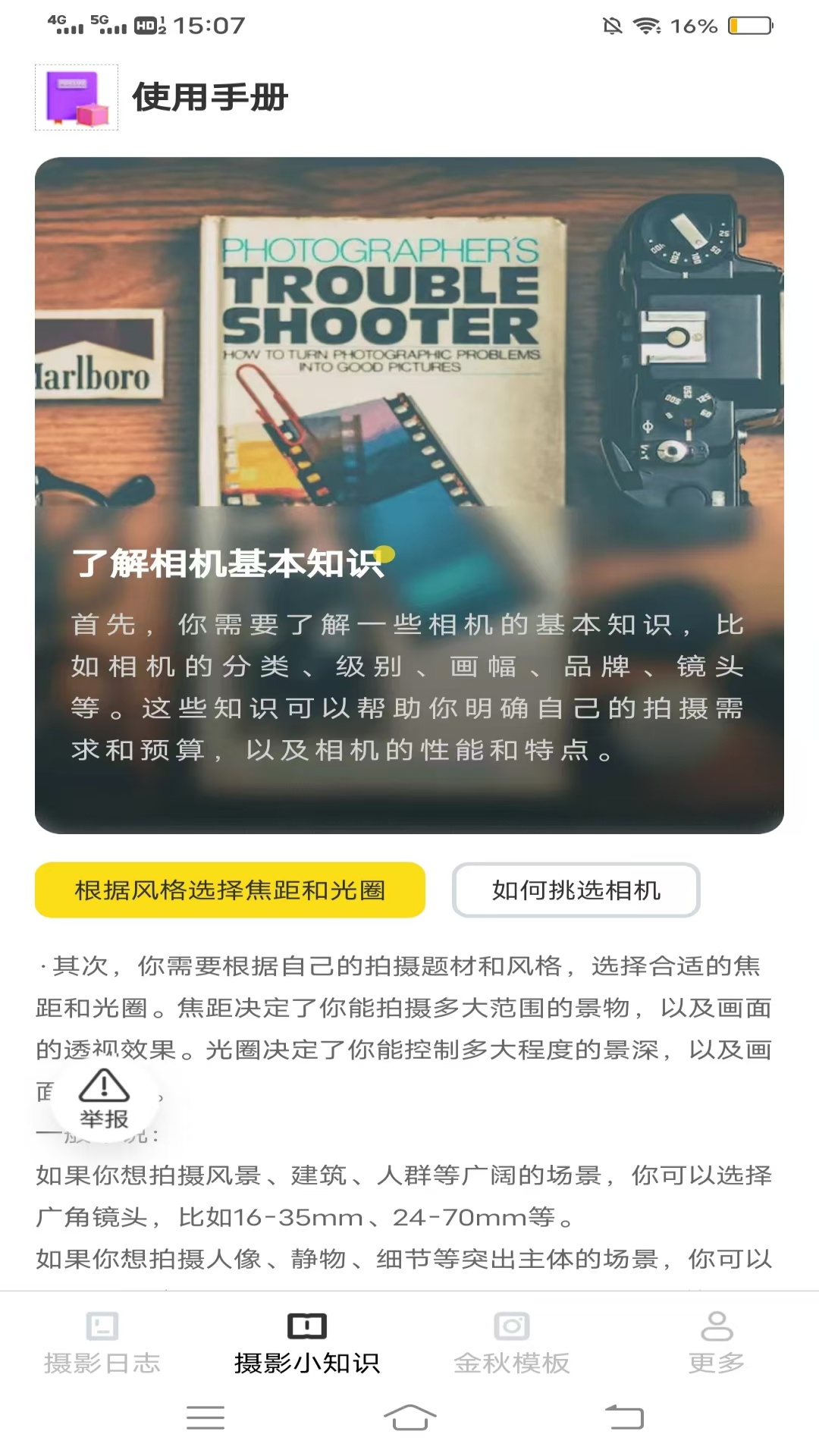 金秋相机是一款集摄影日志、摄影小知识和金秋模板于一体的应用。