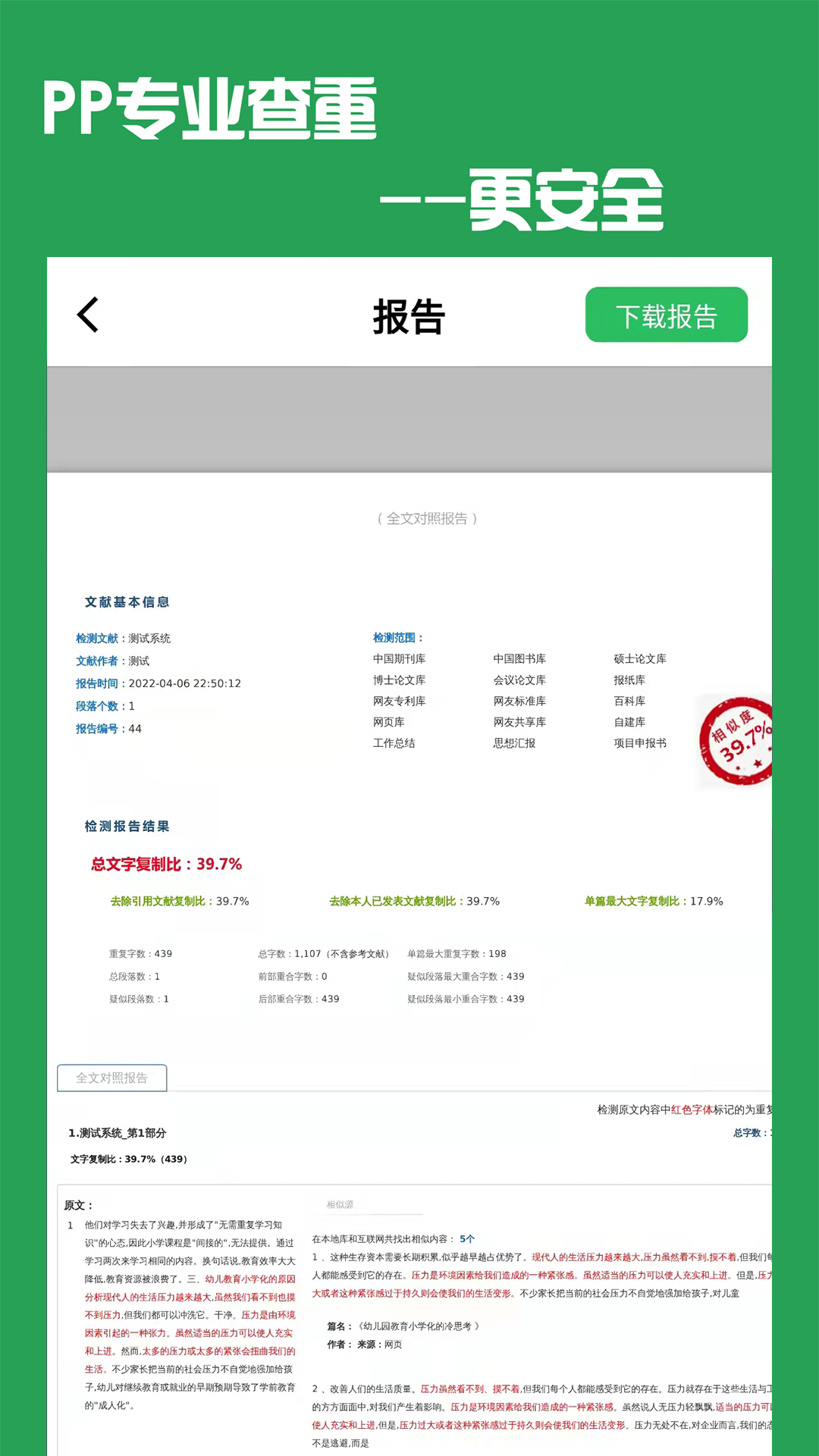 在查重操作过程中,PP论文查重软件安全性极高,并且保密性良好,充分保护用户的隐私。其检测结果的正确率相当高,值得信赖。