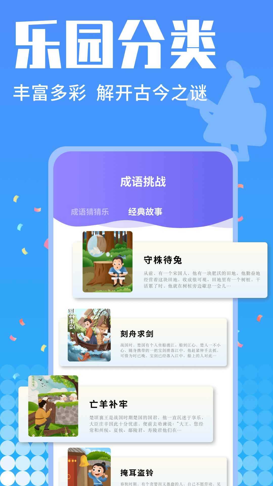 畅玩空间是一款以娱乐休闲为主题的应用,其天天玩乐园内容十分丰富。在这个应用里,你能够体验多种趣味十足的成语模式,还能畅游于成语故事的世界。