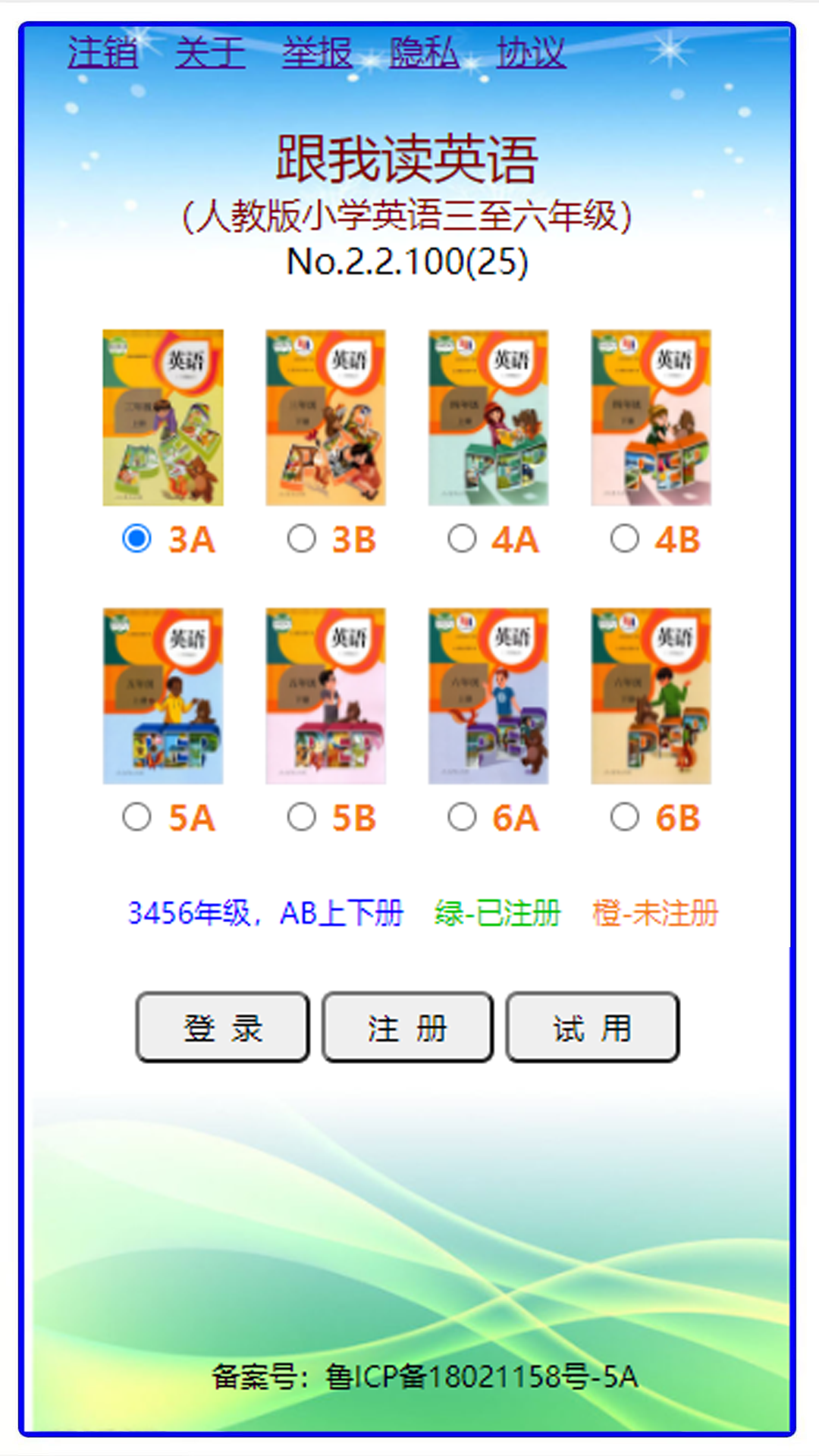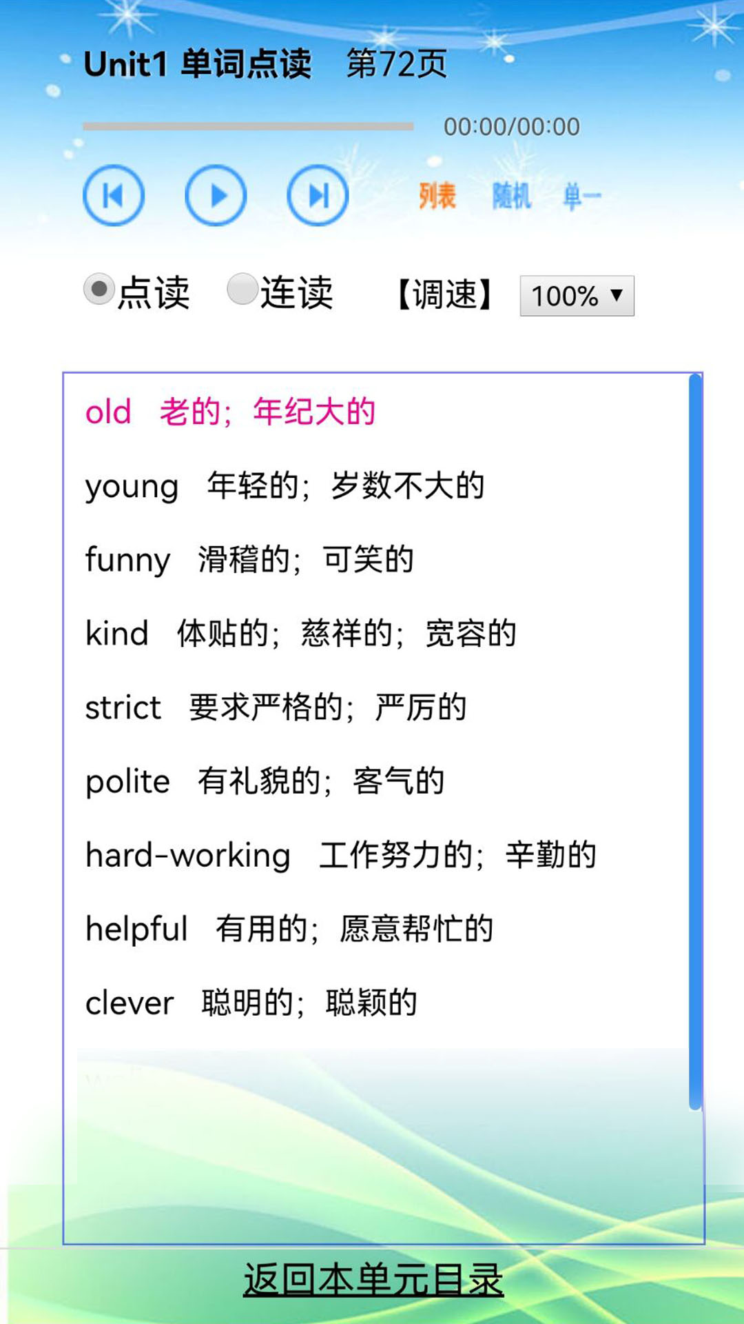 软件采用纯正语音环境,按教材体系编排,与教材同步,所选材料全部来自课本,支持循环朗读、连续听读等多种模式。