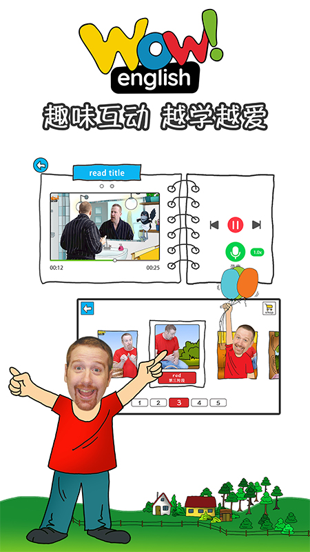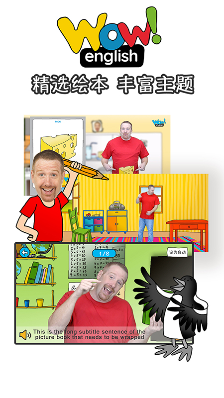 Wow English App获得了英国Wattsenglish Ltd.公司旗下《Wow English》动画课程的正版授权。《Wow English》动画课程中的核心角色Steve和小鸟Maggie在幼儿英语与小学英语领域颇负盛名,是英美国家备受喜爱的品牌之一。它构建了一个深受孩子们喜爱的多彩英语学习世界,每个视频片段都围绕一个主题展开,自始至终充满有趣的歌曲和故事,极大地调动了孩子的学习积极性。其中的Steve是一位深受孩子们喜爱的、纯正的英语教师。