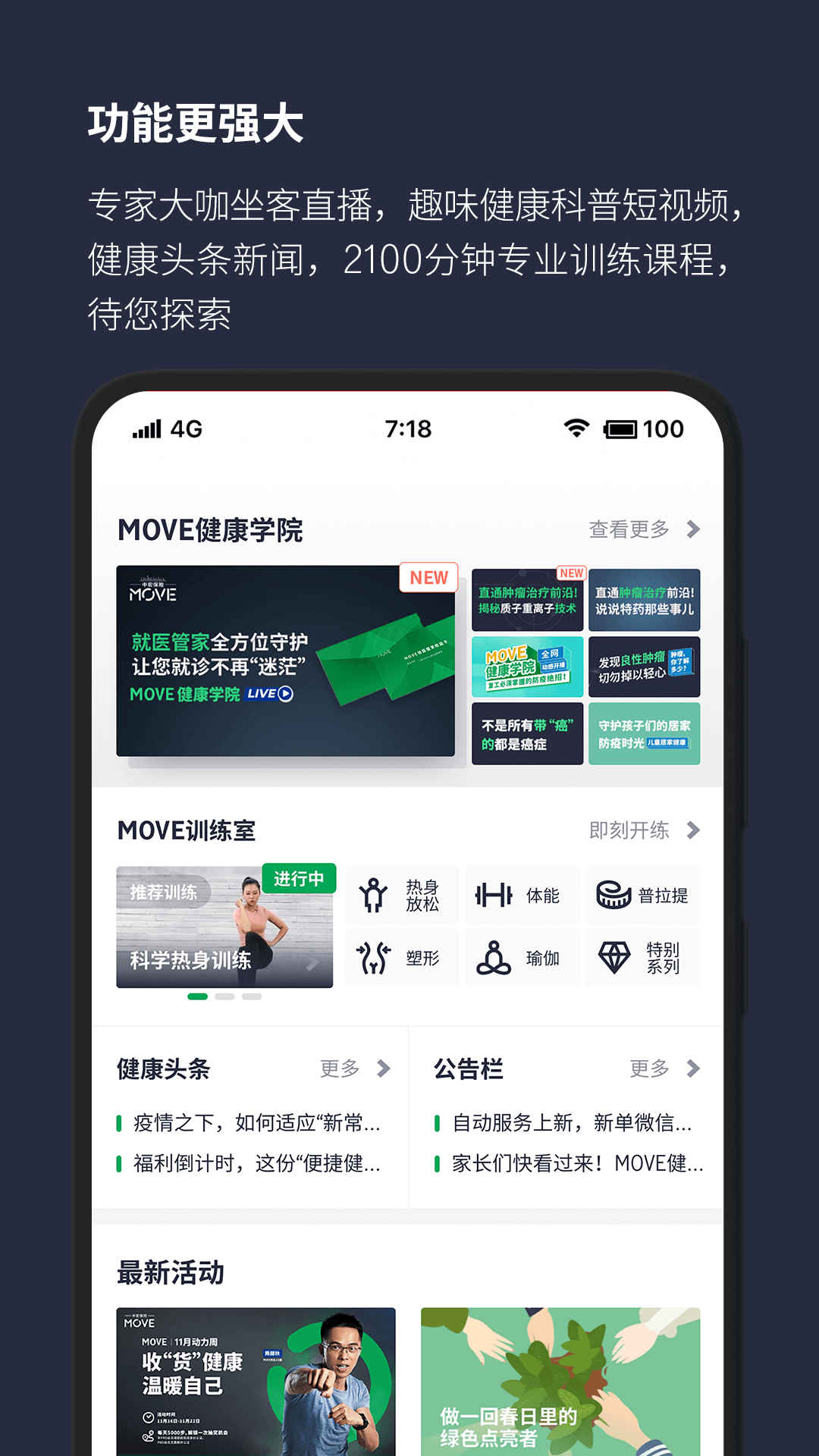 MOVE计划4.0,继续秉承MOVE for All理念,以“掌握健康每一步”为核心,整合“医、药、保、健”关键资源,打造具有前瞻性的健康生态圈。