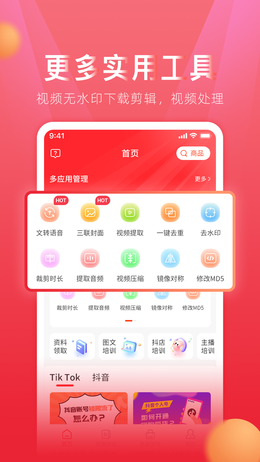 TK小店是一款专业的跨境电商运营助手哦。它能够为您提供丰富多样的电商运营视频,各种各样的榜单可供您随意查看,这有助于您更加精准地挑选适合自己的商品。而且呢,它还提供了专业的视频处理功能。