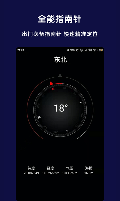 - 它能够为您提供指南针、经纬度以及地理位置等多方面的信息。