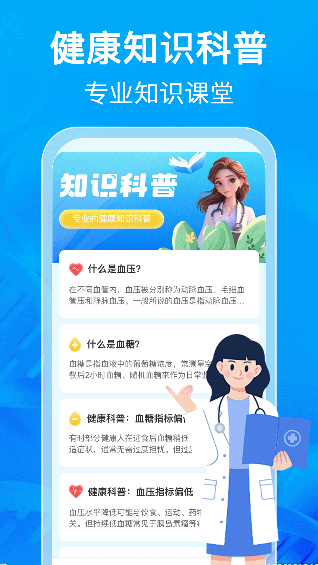其三则是知识科普区。这里汇聚了数量众多的有关血压、血糖管理方面的知识,同时还有丰富的健康小贴士。在这个区域,您可以获取到大量有用的信息,从而提升自己的健康意识,让您在健康管理方面更加得心应手。