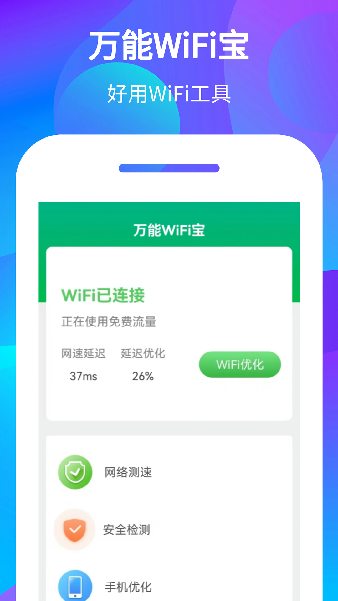 万能WiFi宝不仅可以智能监测和管理手机网络,让您畅享无忧网络。还可以清理无用空间,优化手机性能,让您的手机始终保持高效运行状态。