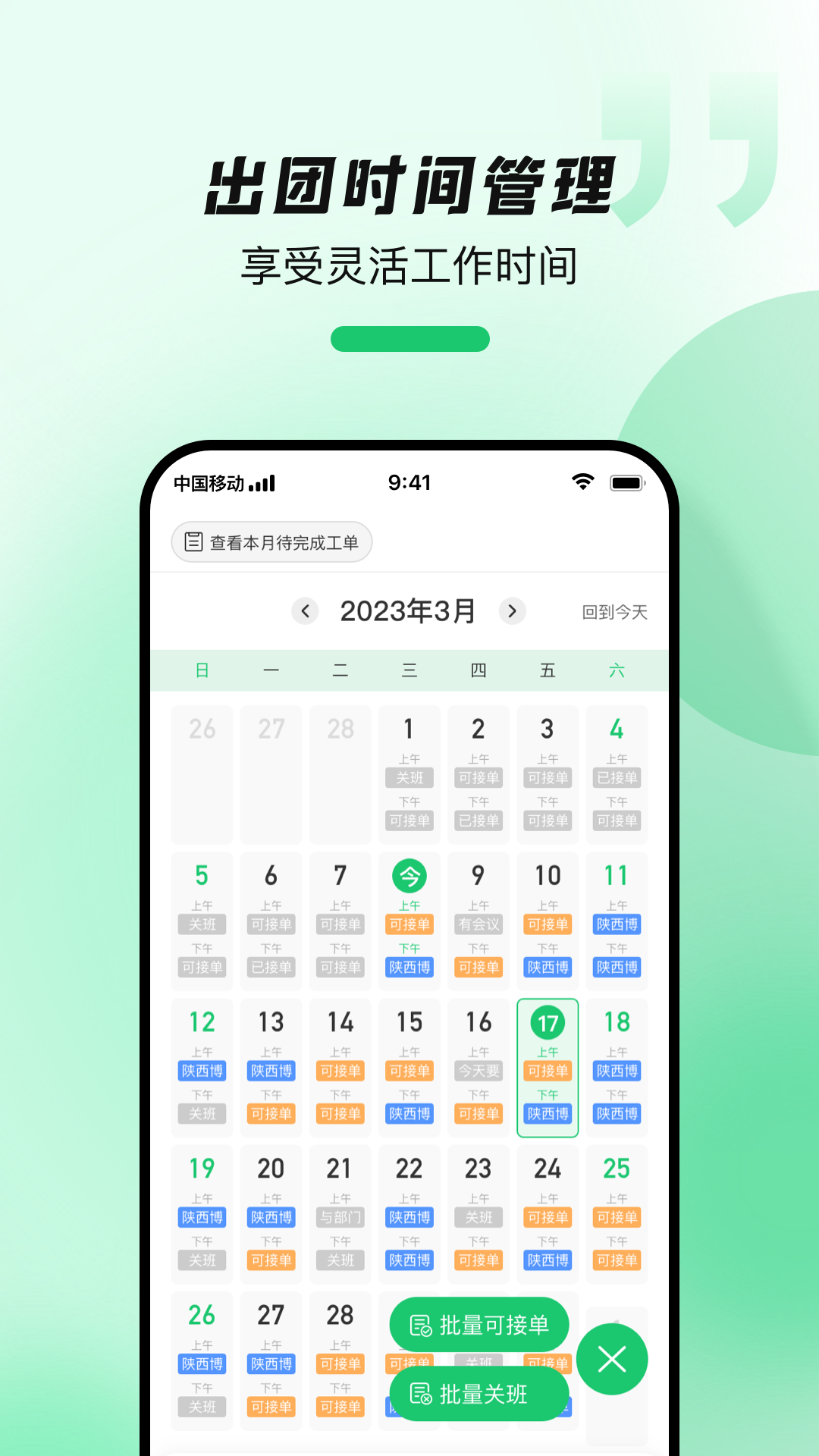 3. 出团时间管理:可以轻松地设定出团接待时间,享有灵活的工作时间安排。